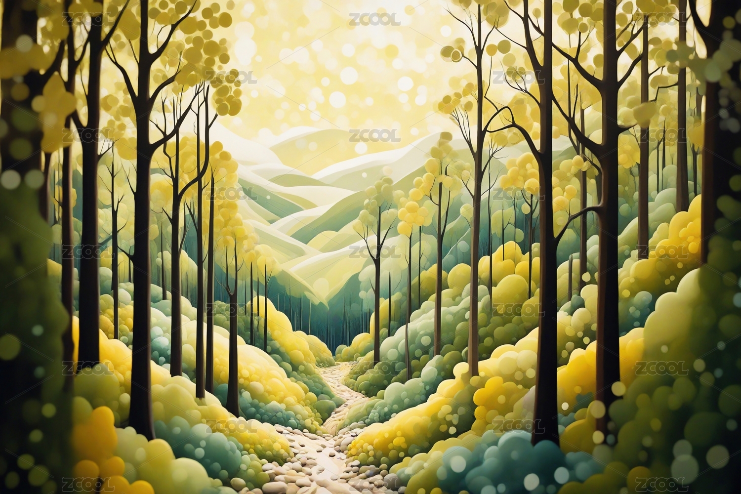 秋景,树林,小路,落叶,枫叶,金色,橙色,红色,水彩画,风景画