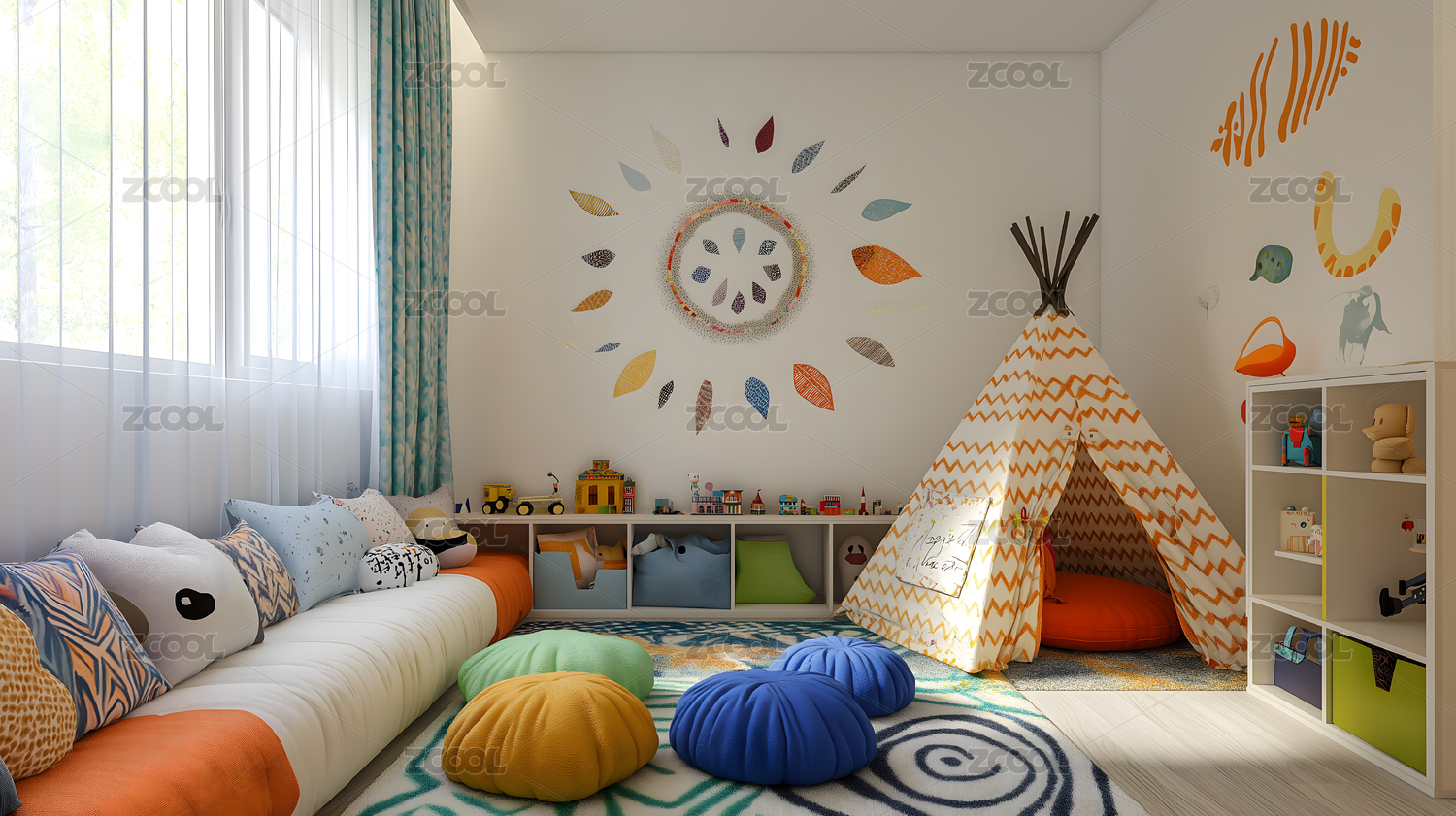儿童卧室,奇趣,游戏帐篷,活力色彩,舒适,想象力,儿童房,室内设计,软玩具,创意空间