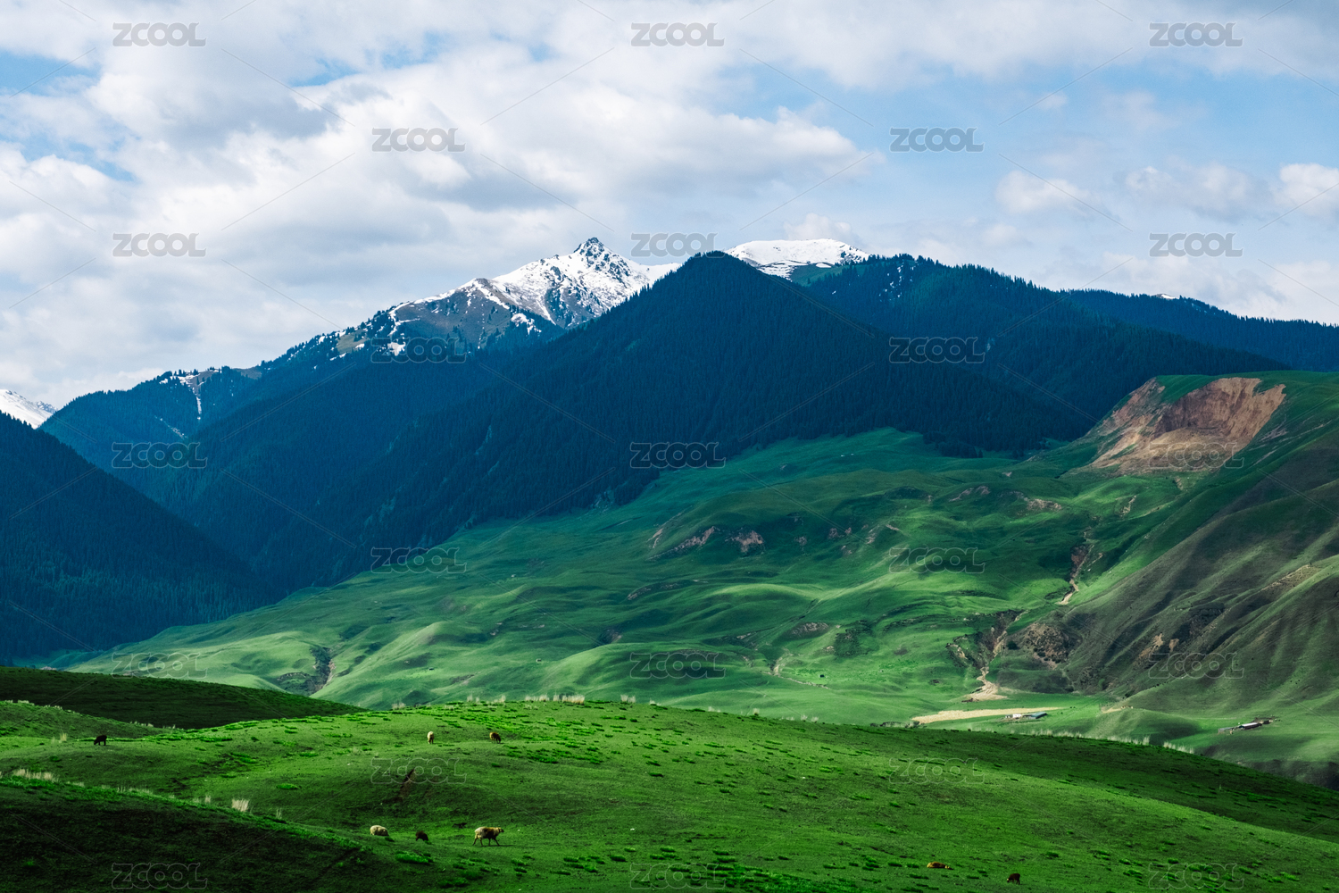 中国新疆伊犁特克斯琼库石台天山草原风光