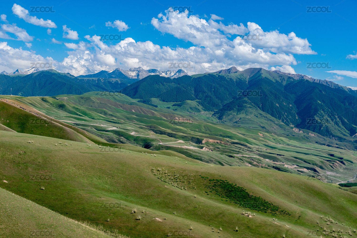 中国新疆伊犁特克斯县阿克塔斯高山草原风光