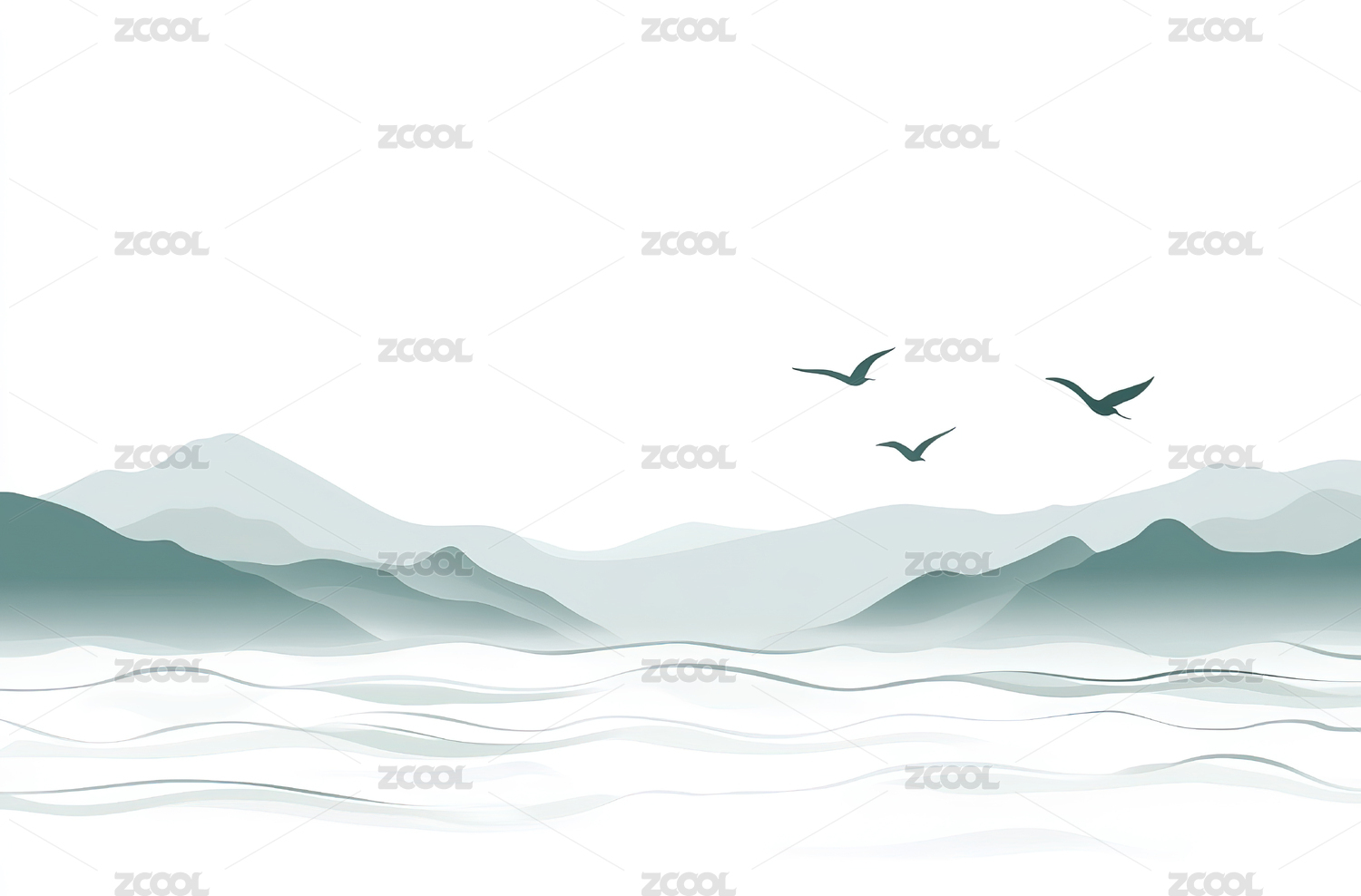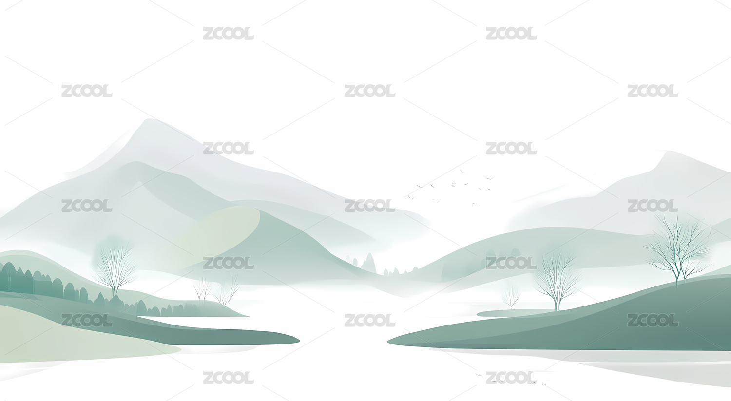 清新淡雅自然风景山水插画艺术矢量图