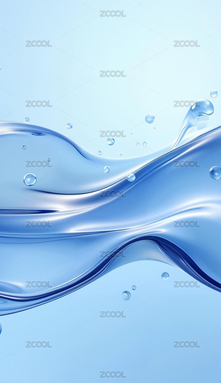 蓝色水滴和透明玻璃曲线背景3D渲染