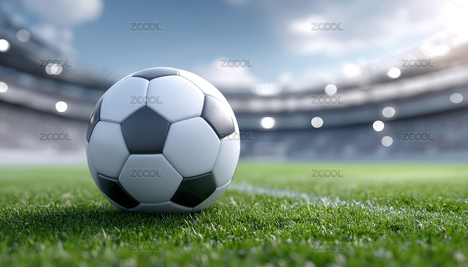 体育场内绿茵场上的足球