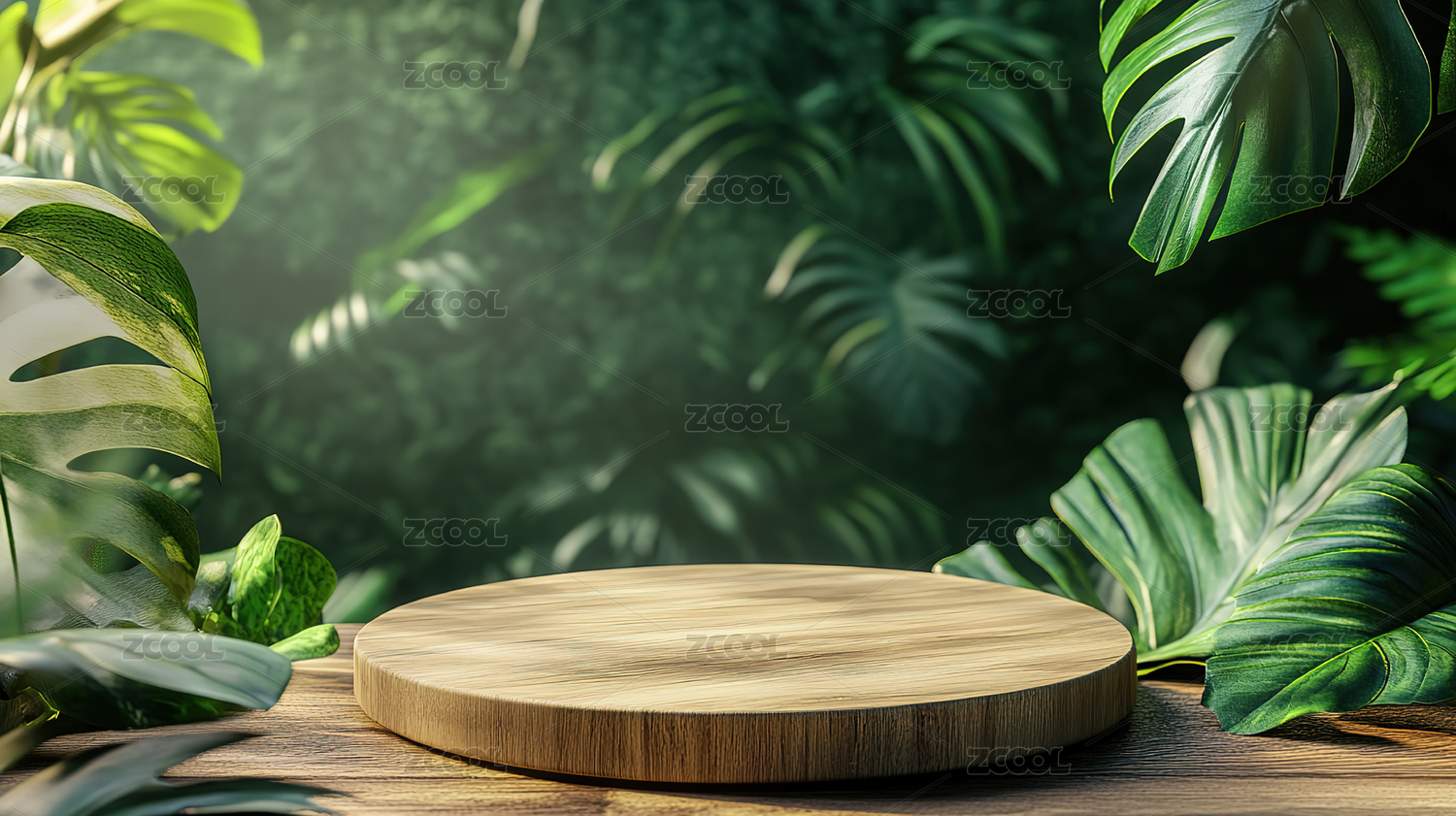 绿色背景植物与木台展示