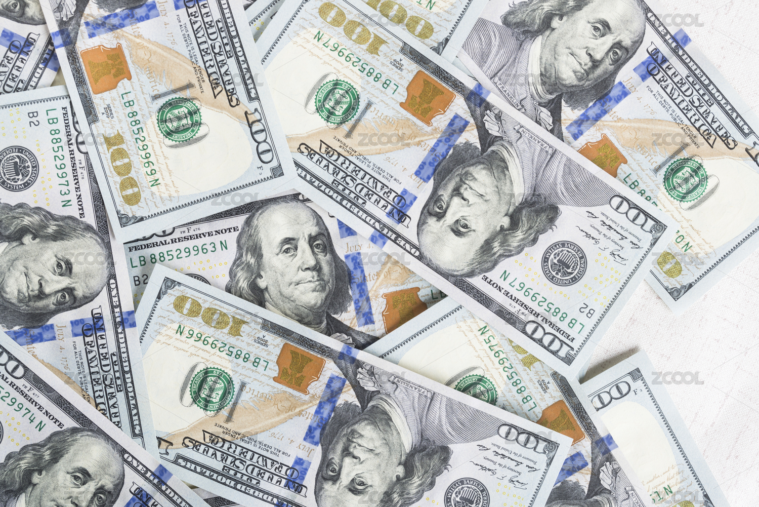 一叠,多,白底,棚拍,特写,一堆,钱,美元,货币,100美元