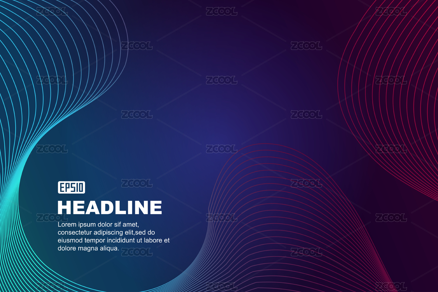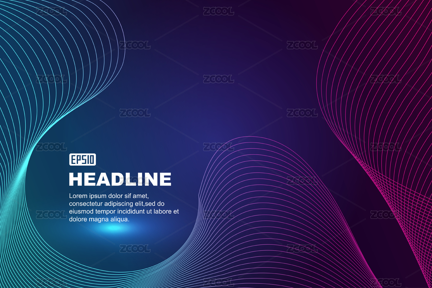 蓝紫色发光渐变线条、具有科技感海报背景。