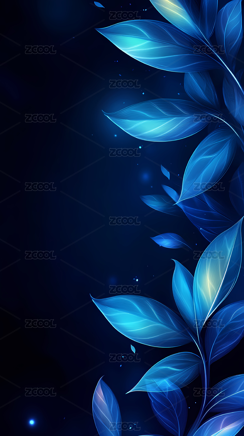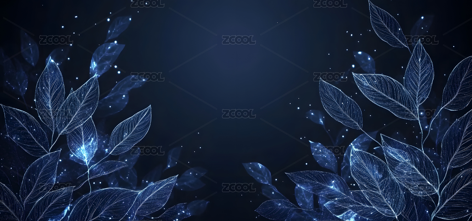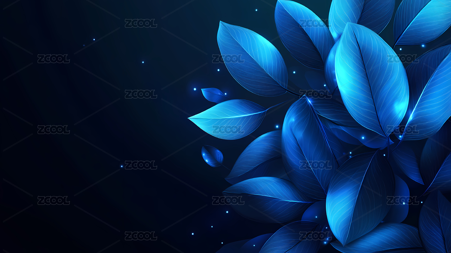 叶子,蓝色,夜空,星星,自然,植物,光影,发光,线条,纹理