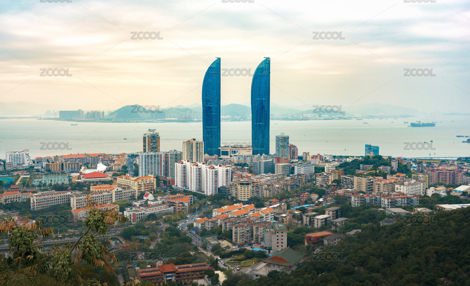 福建省厦门市鼓浪屿都市海湾高楼建筑景观