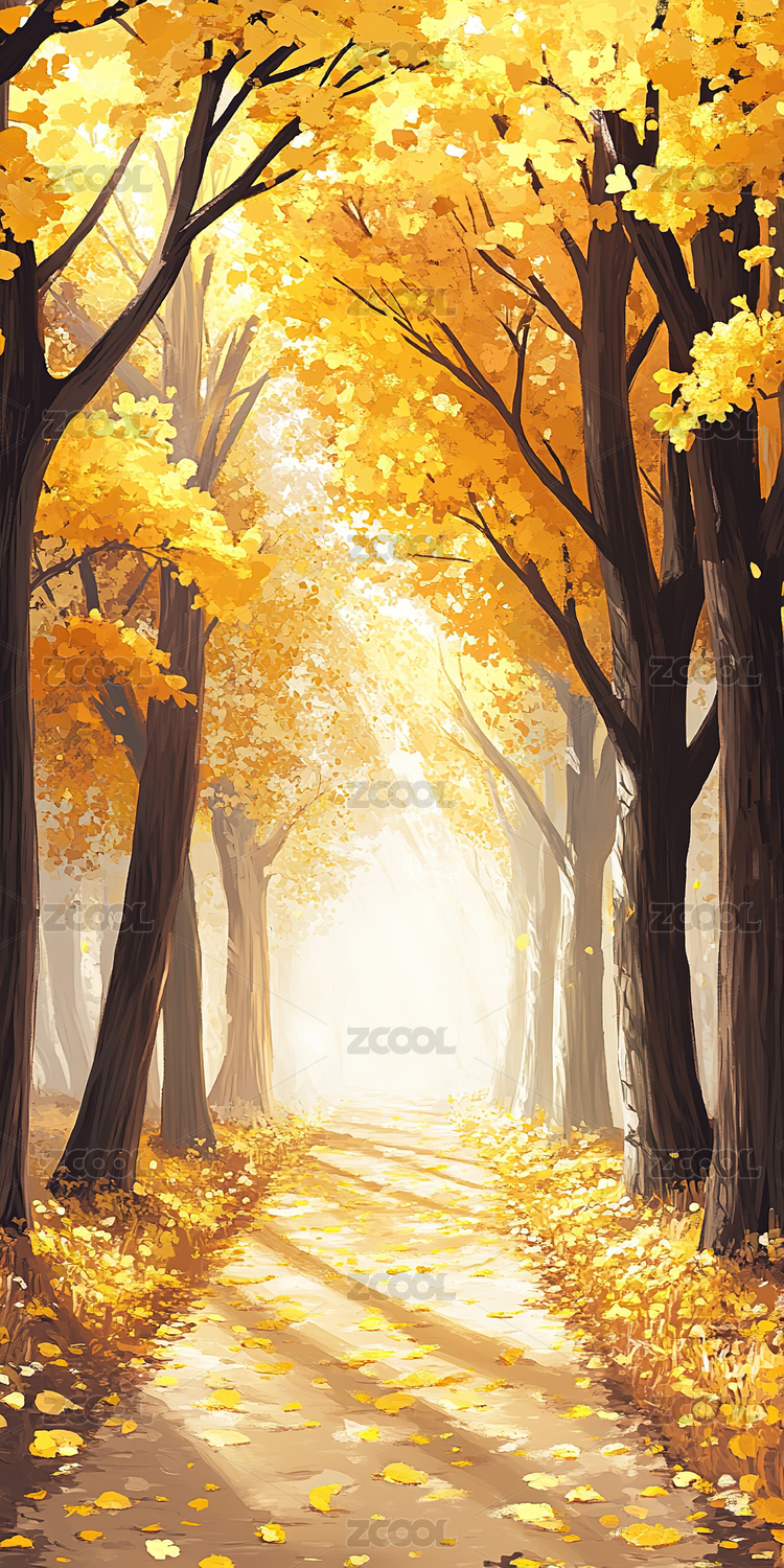 AIGC202402,扁平,水彩,秋天,写意,散步