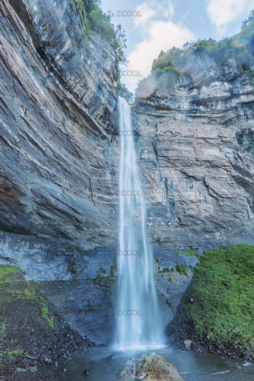 云南彝良小草坝悬崖峭壁瀑布自然风光