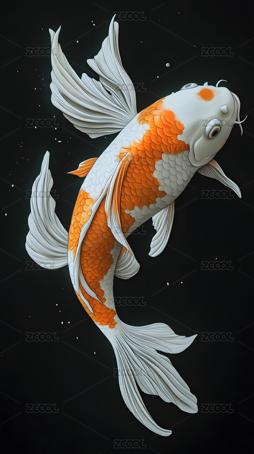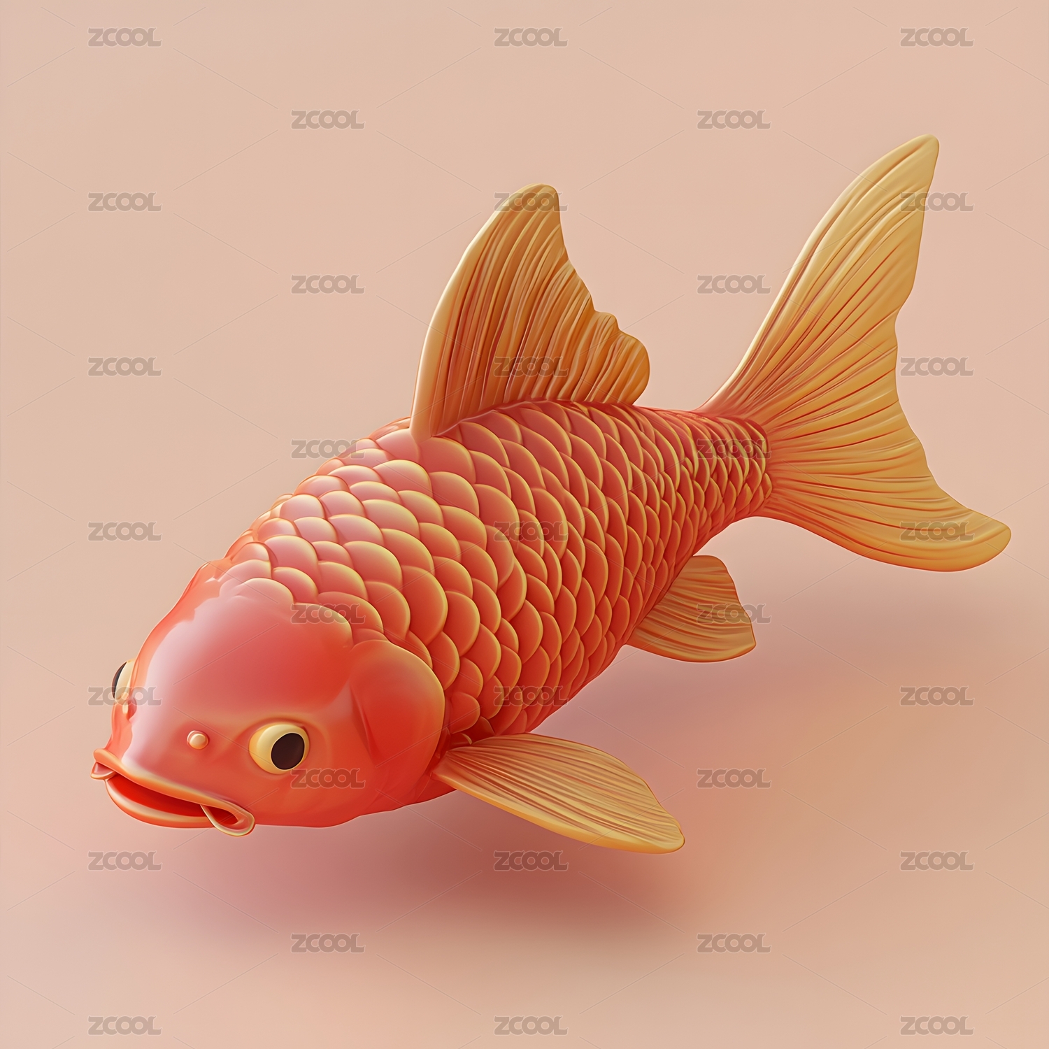 3D渲染红色立体浮雕锦鲤国潮风背景