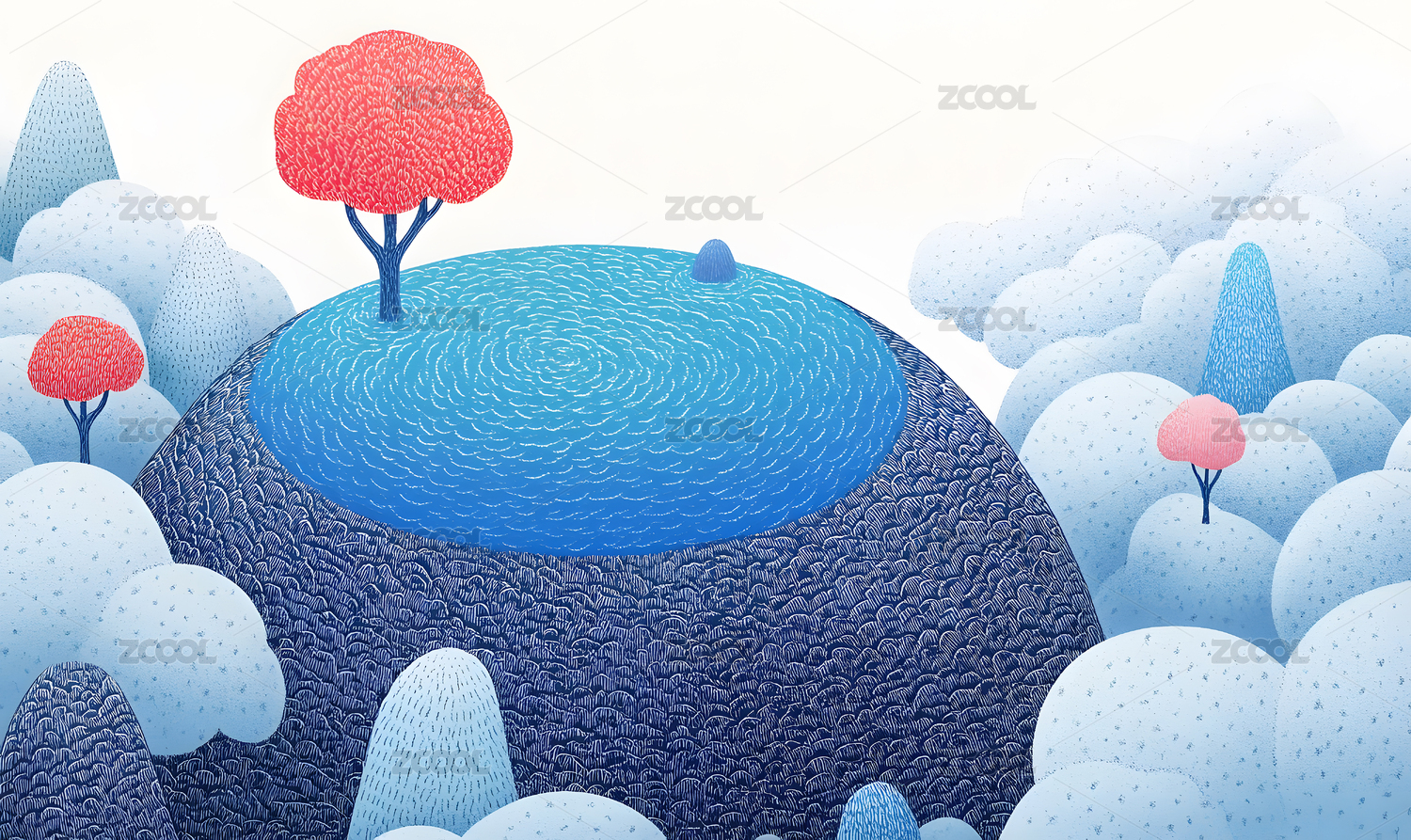 蓝色系扁平创意抽象插画
