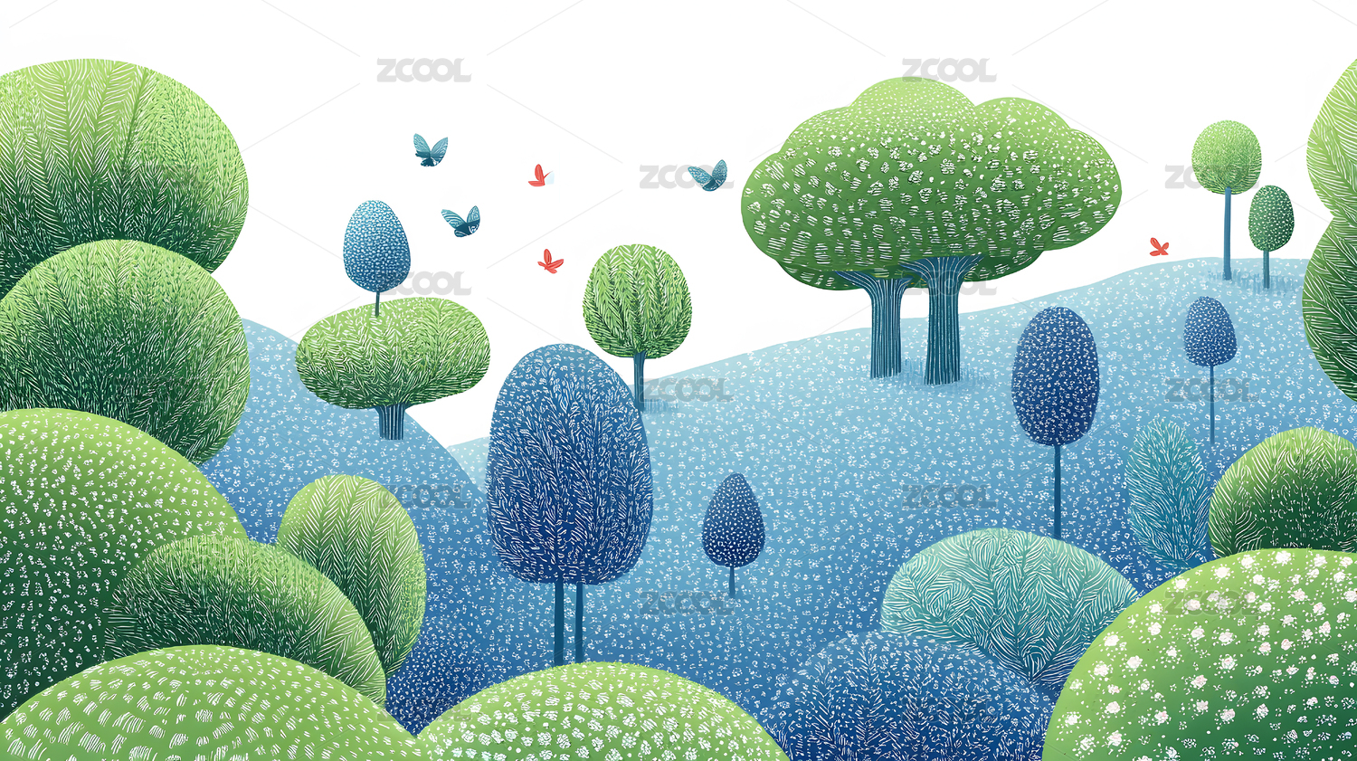 卡通风格的绿色森林景观