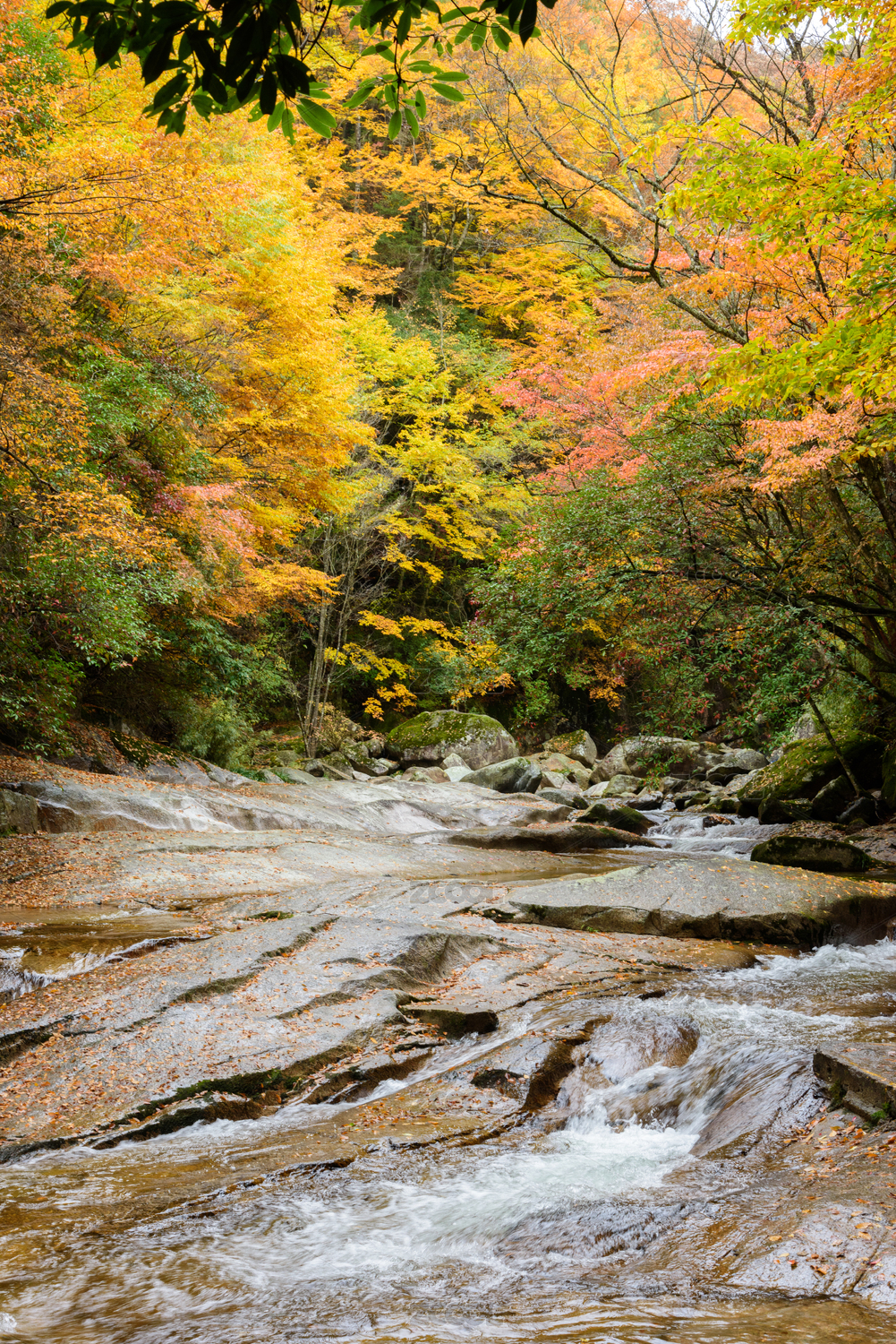 沈阳本溪老边沟,秋季枫树红叶溪流自然风光