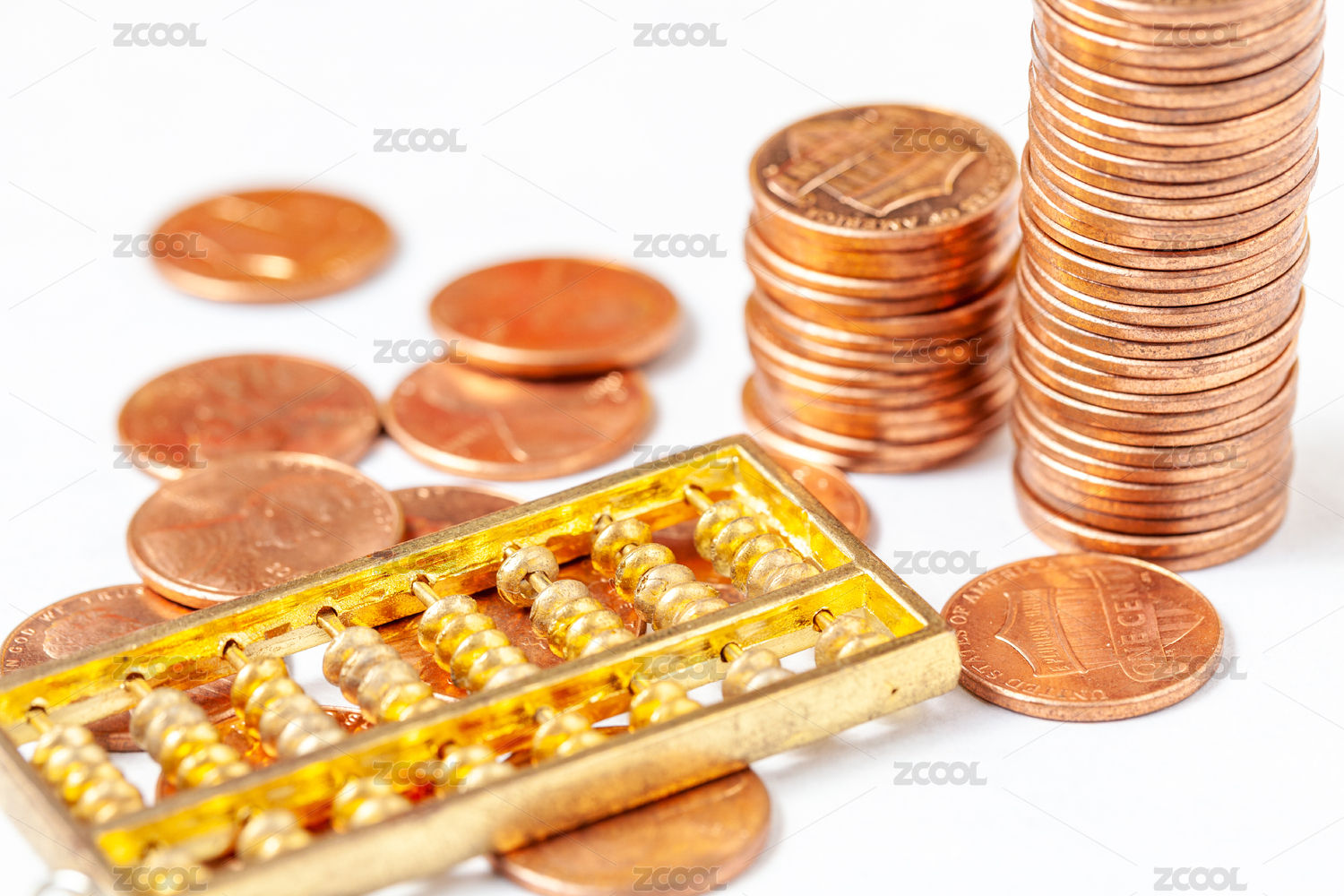 白色背景算盘硬币静物