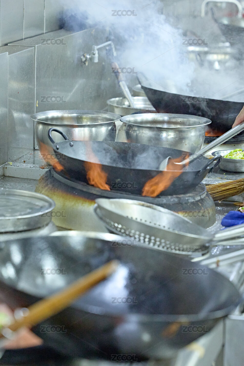 中餐厨房场景 大火镬气氛围