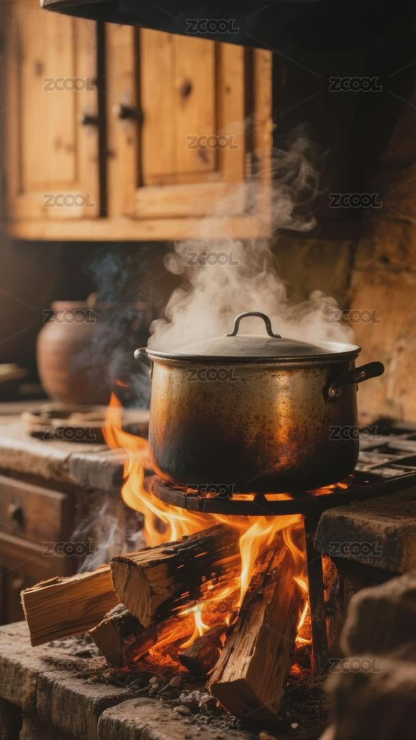 农村柴火烧锅