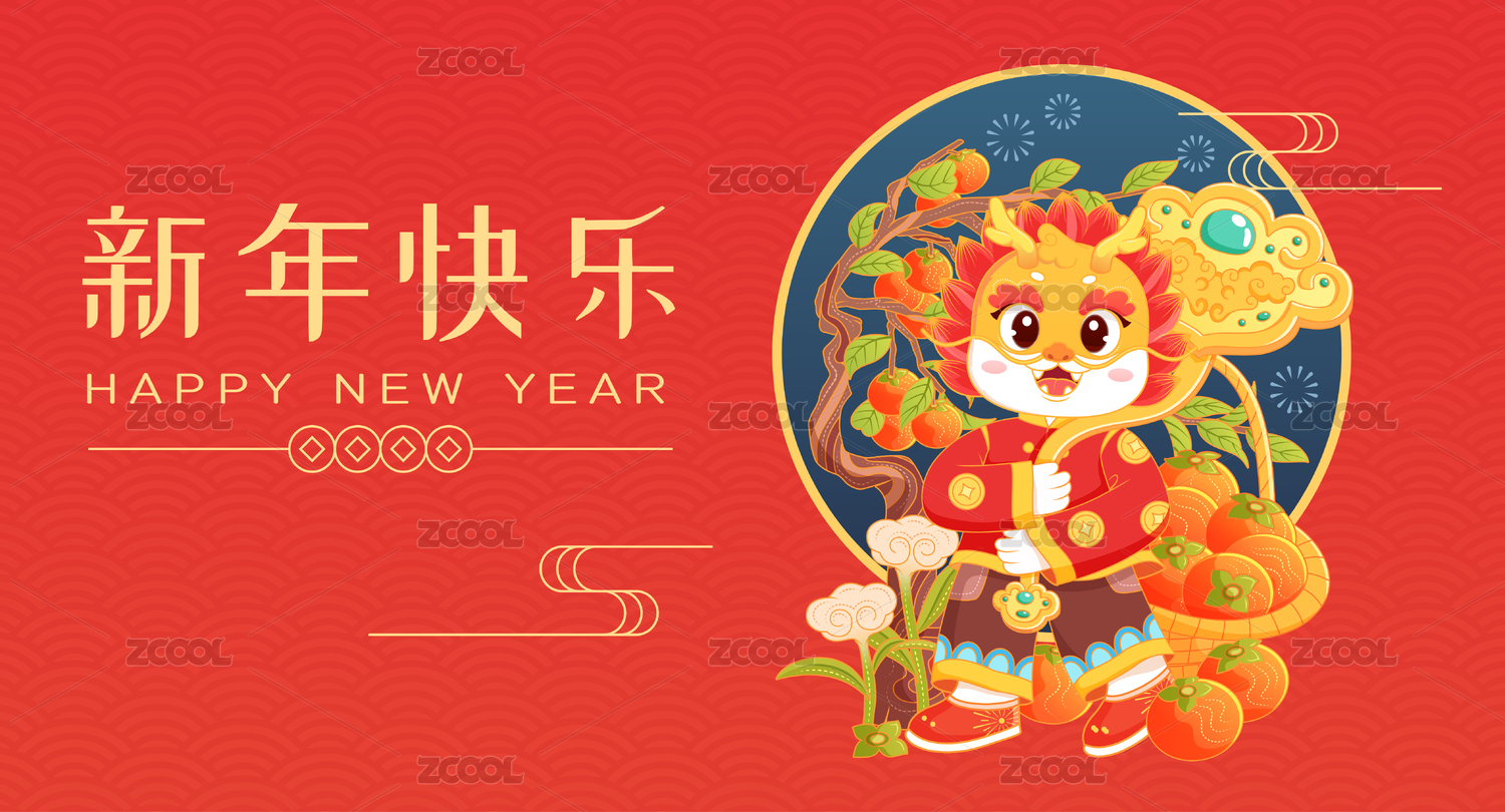 龙年春节财源广进招财进宝横幅矢量插画海报