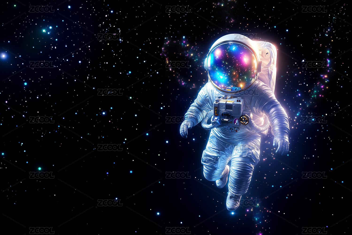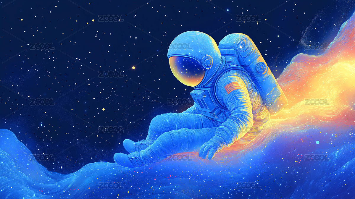 太空宇航员漂浮于星云之中,色彩绚丽