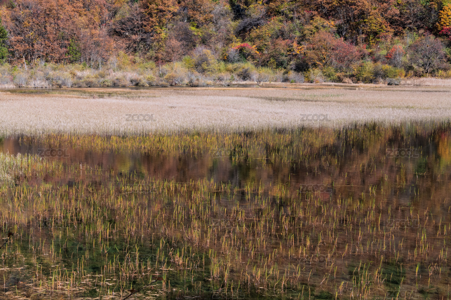中国四川省阿坝州九寨沟景区秋天的孔雀河道