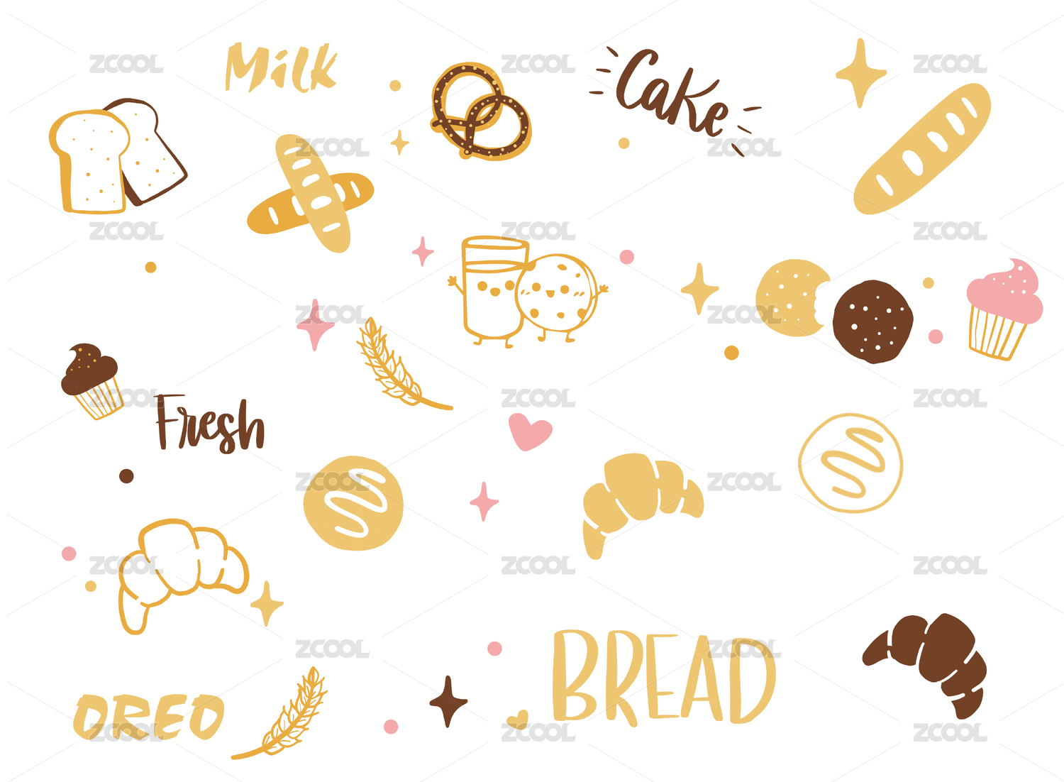 糕点面包线性插画元素