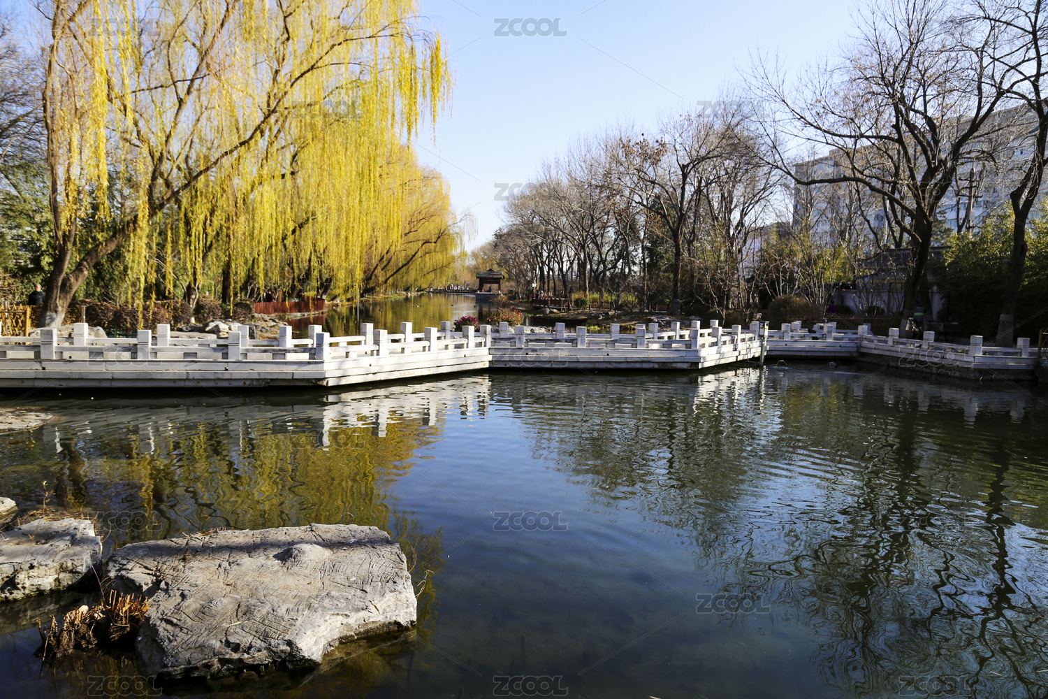 银川,中山公园,休闲,公园,柳树,蓝天,湖,倒影