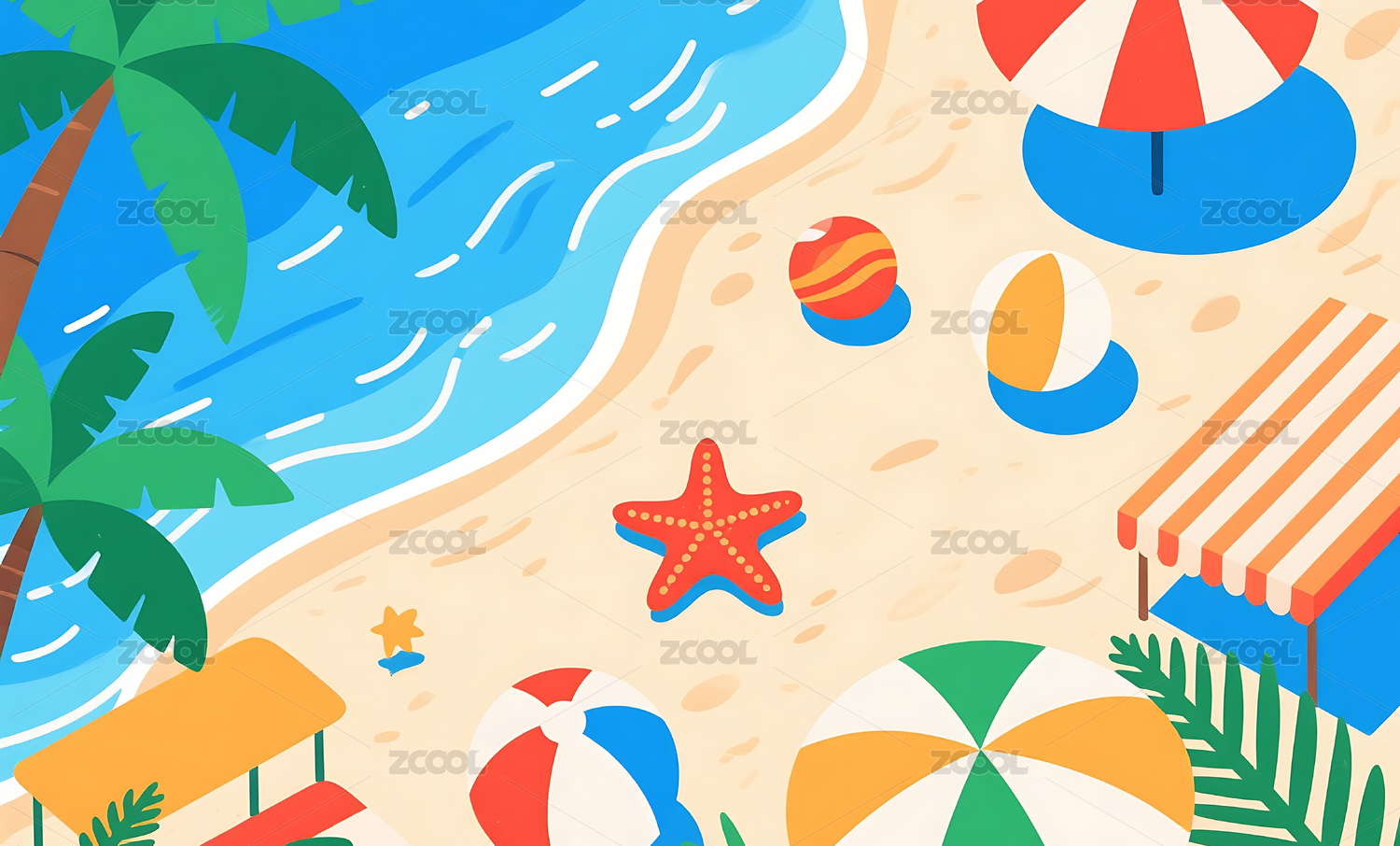 海边沙滩卡通插画背景壁纸