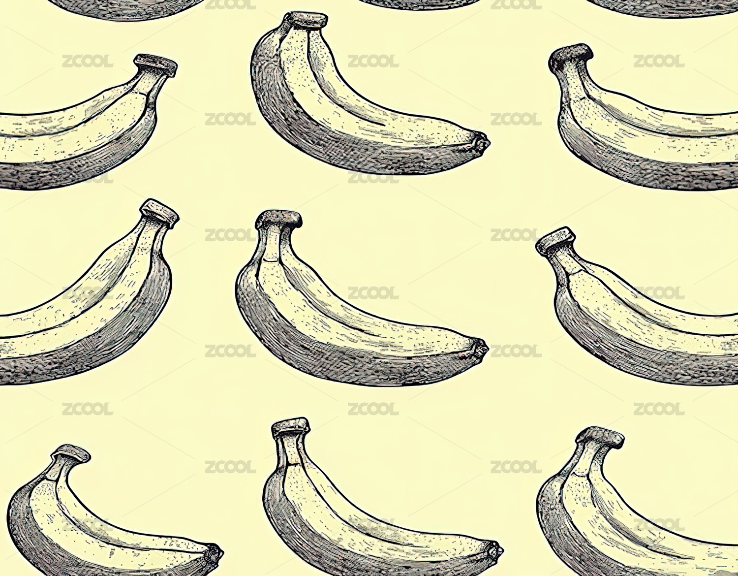 复古香蕉白底手绘插图四方连续