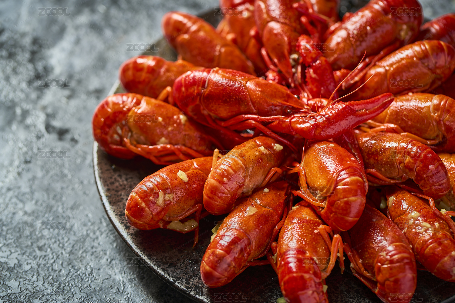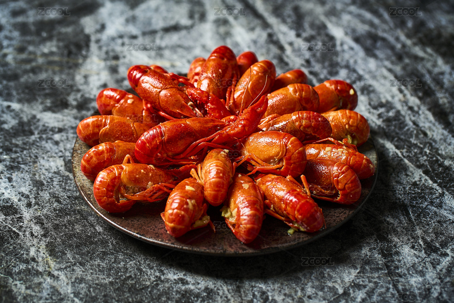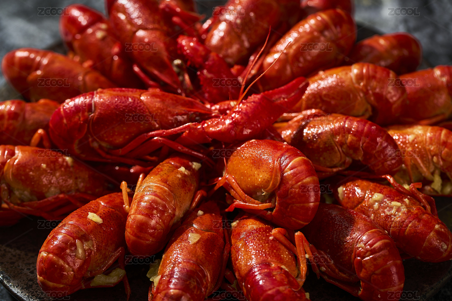 深色背景下的小龙虾