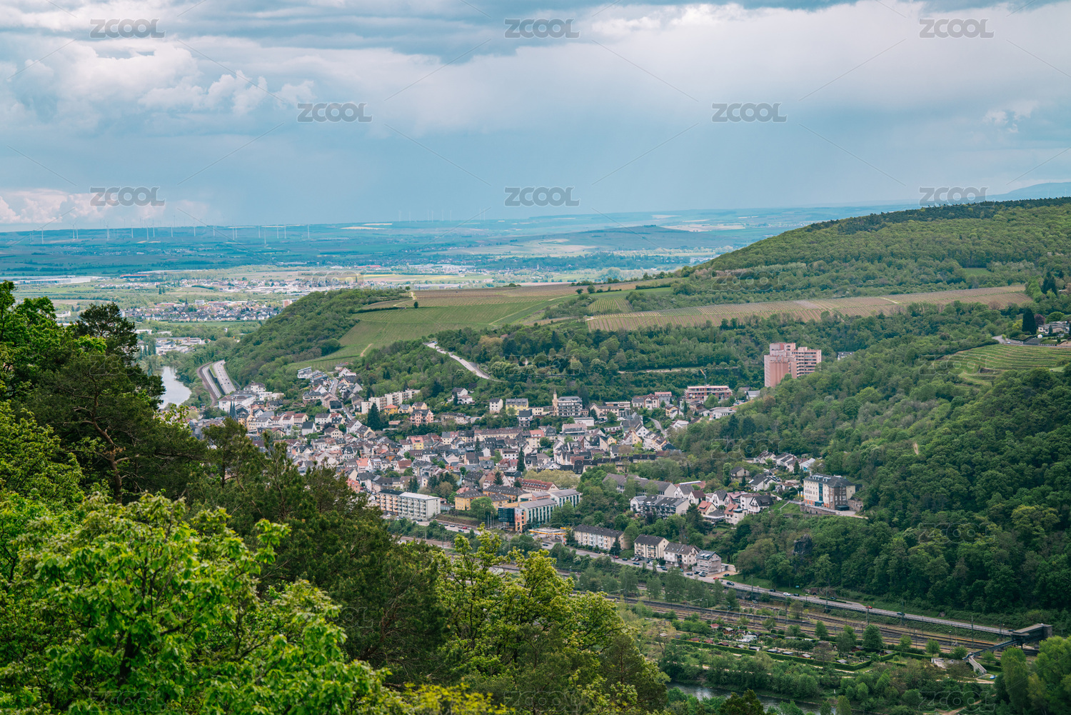 眺望德国莱茵河畔宾根城,莱茵河谷的起点