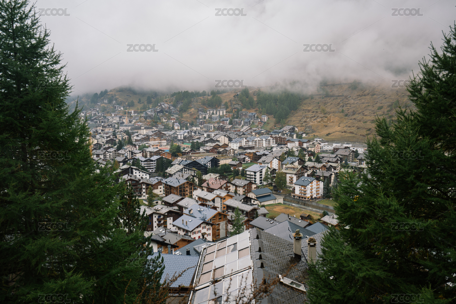 瑞士冰川之城采尔马特坐落在山谷云雾之中
