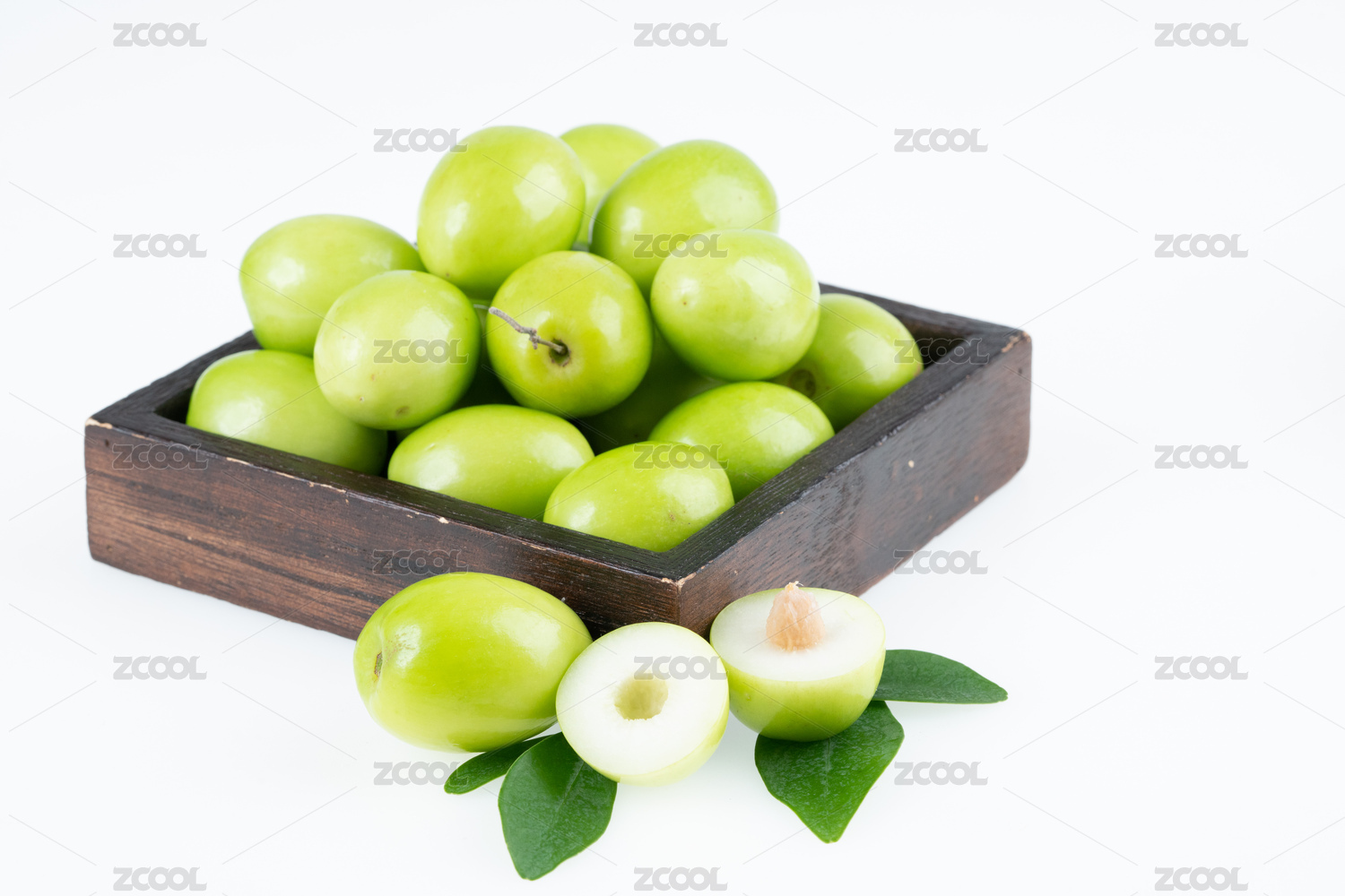静物,绿色,水果,食品,健康食物,清新,背景分离,影棚拍摄,特写,青梅