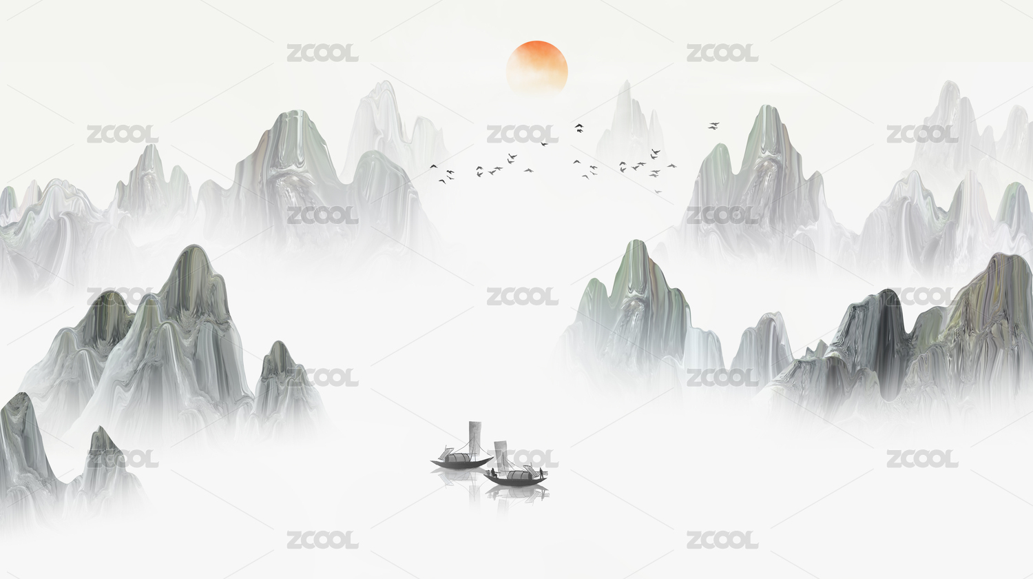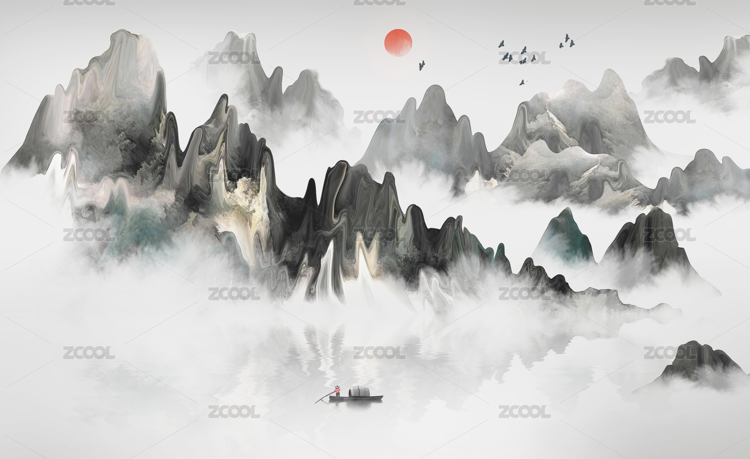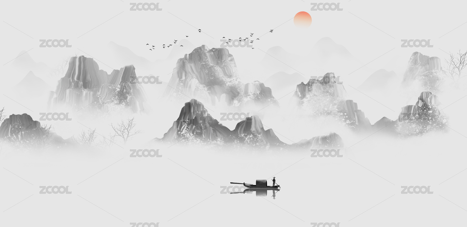 新中式意境山水画背景图