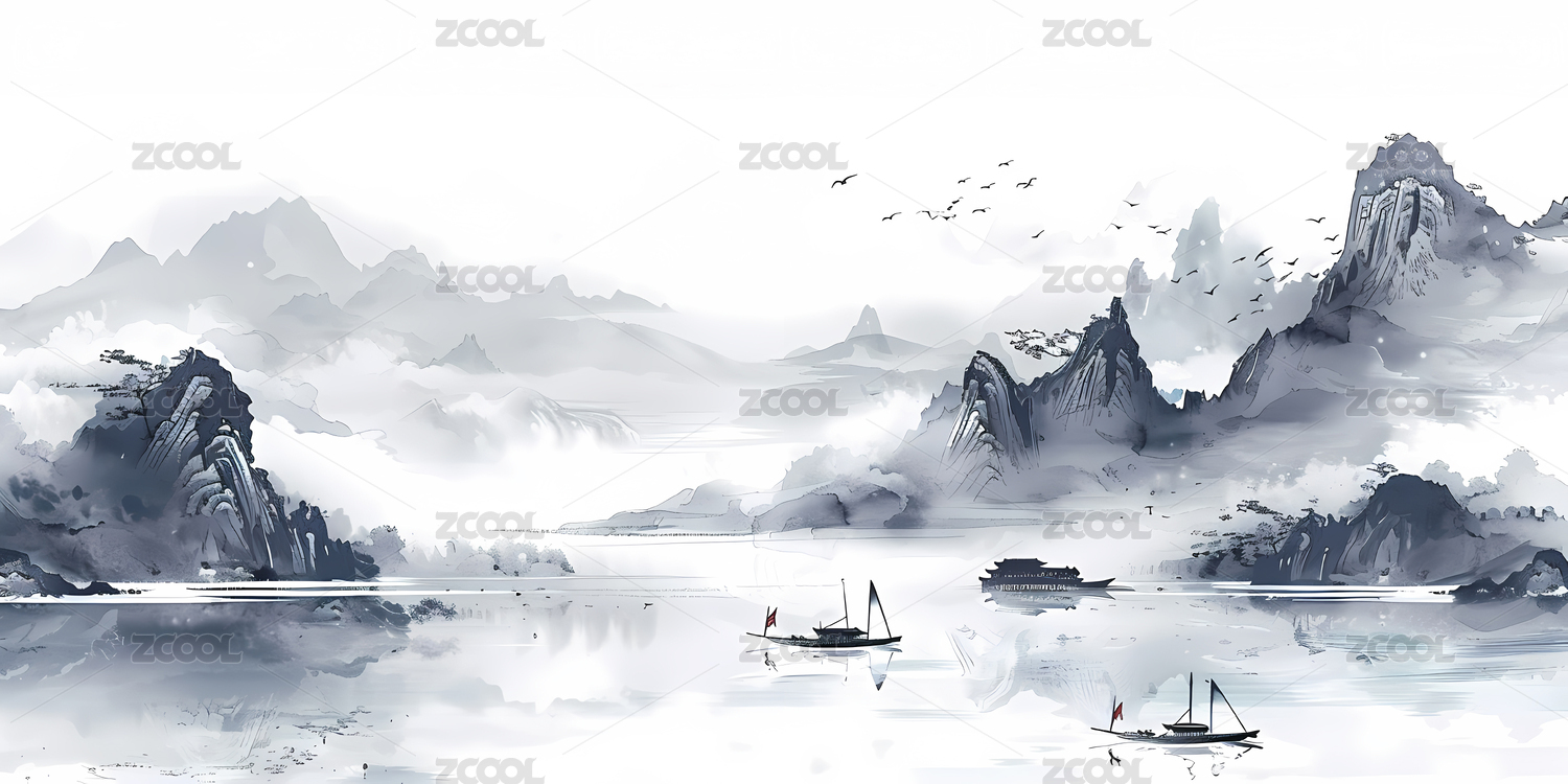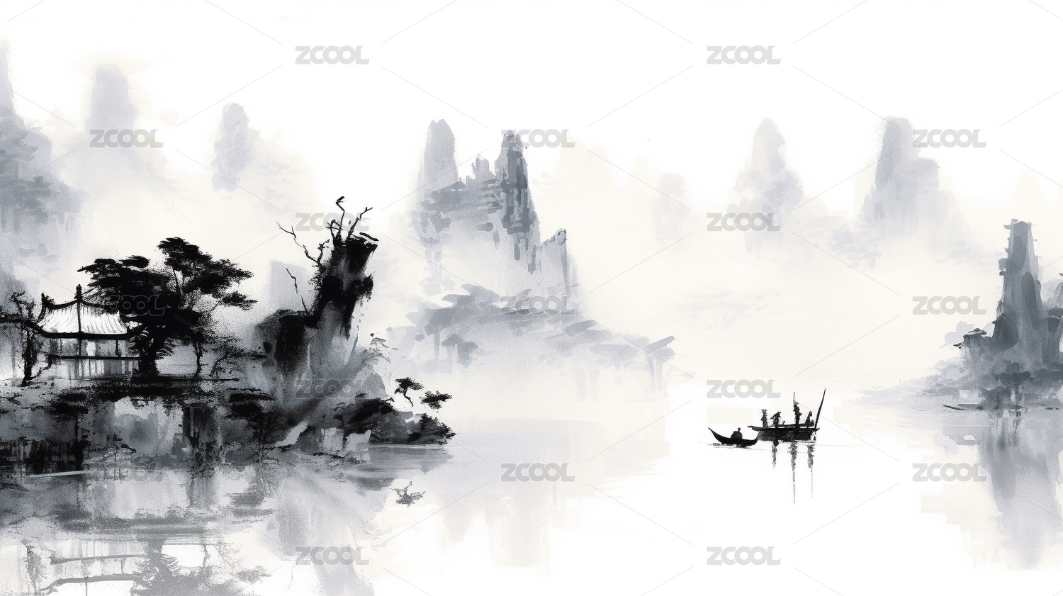 意境,水墨风,装饰画,国画,淡雅,中国风,古风,复古,山水,山水画