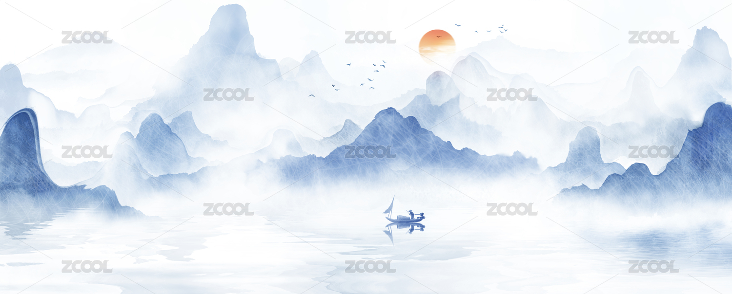 蓝色,意境,水墨,山水,风景,艺术,插画,山水画,背景,手绘