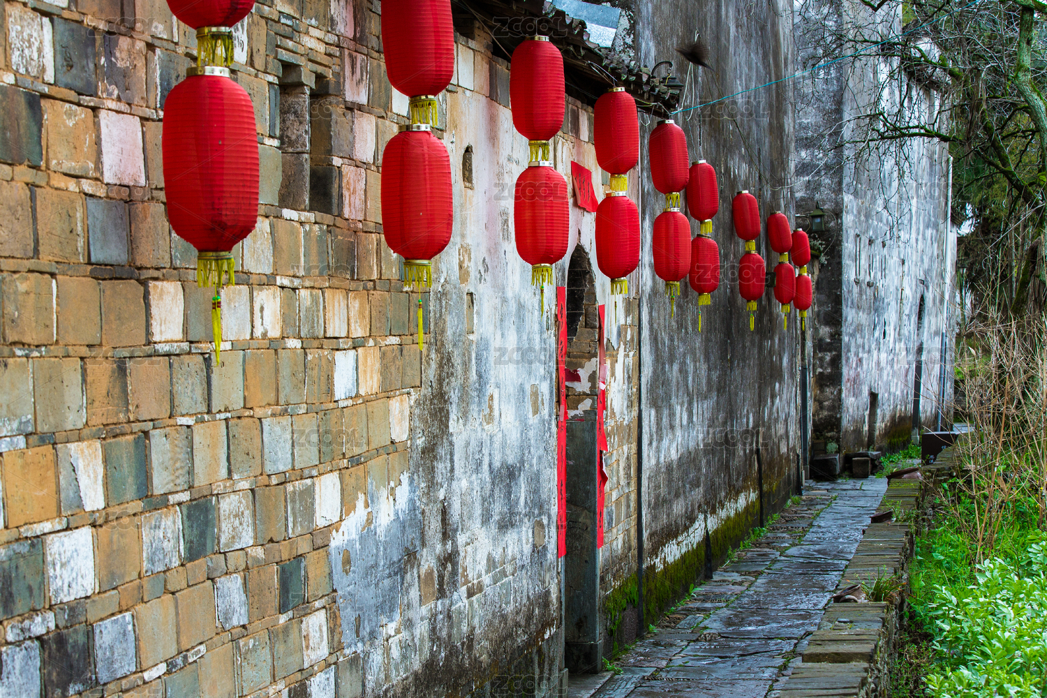 中国安徽黄山雨后宏村的巷子