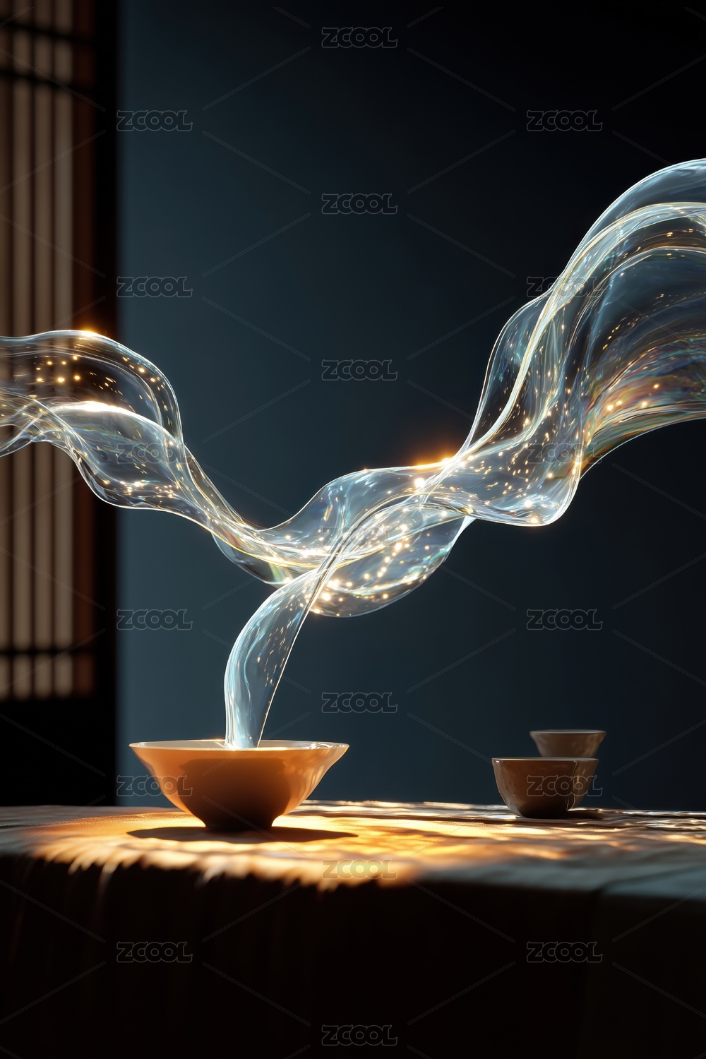 中式创意禅意插画艺术陶瓷水流3D立体插画