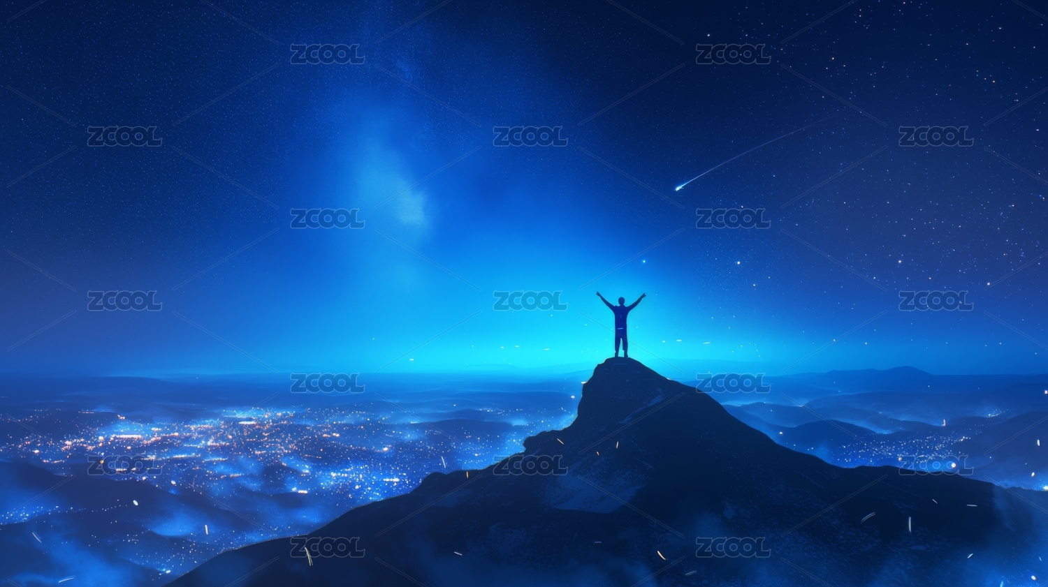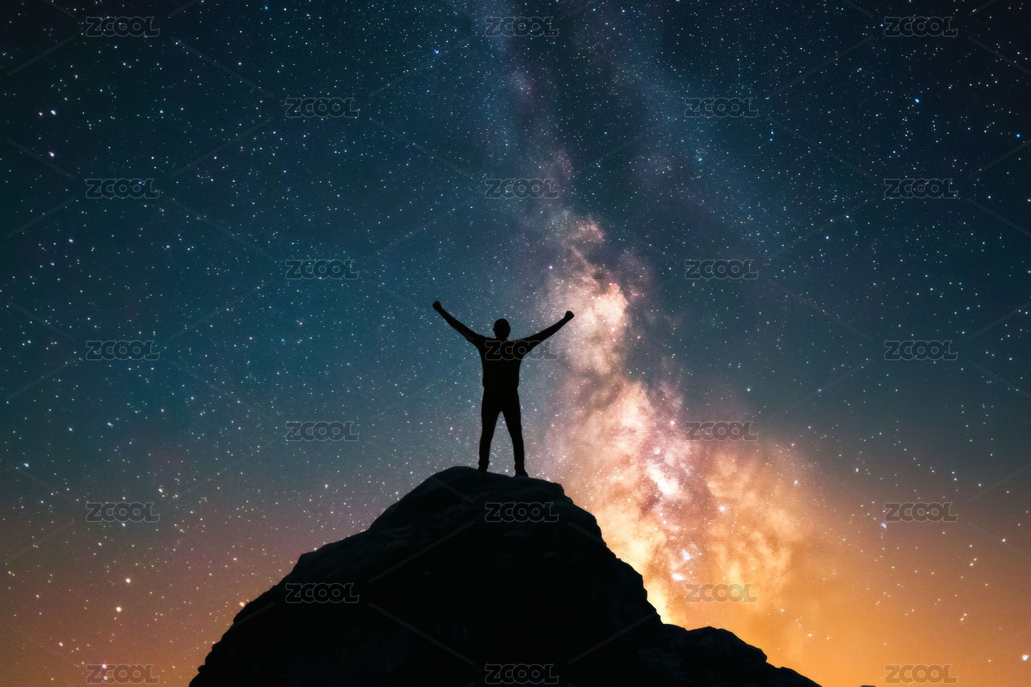 星空,银河,站在,山顶,人,宇宙,景观,流星,璀璨,孤独