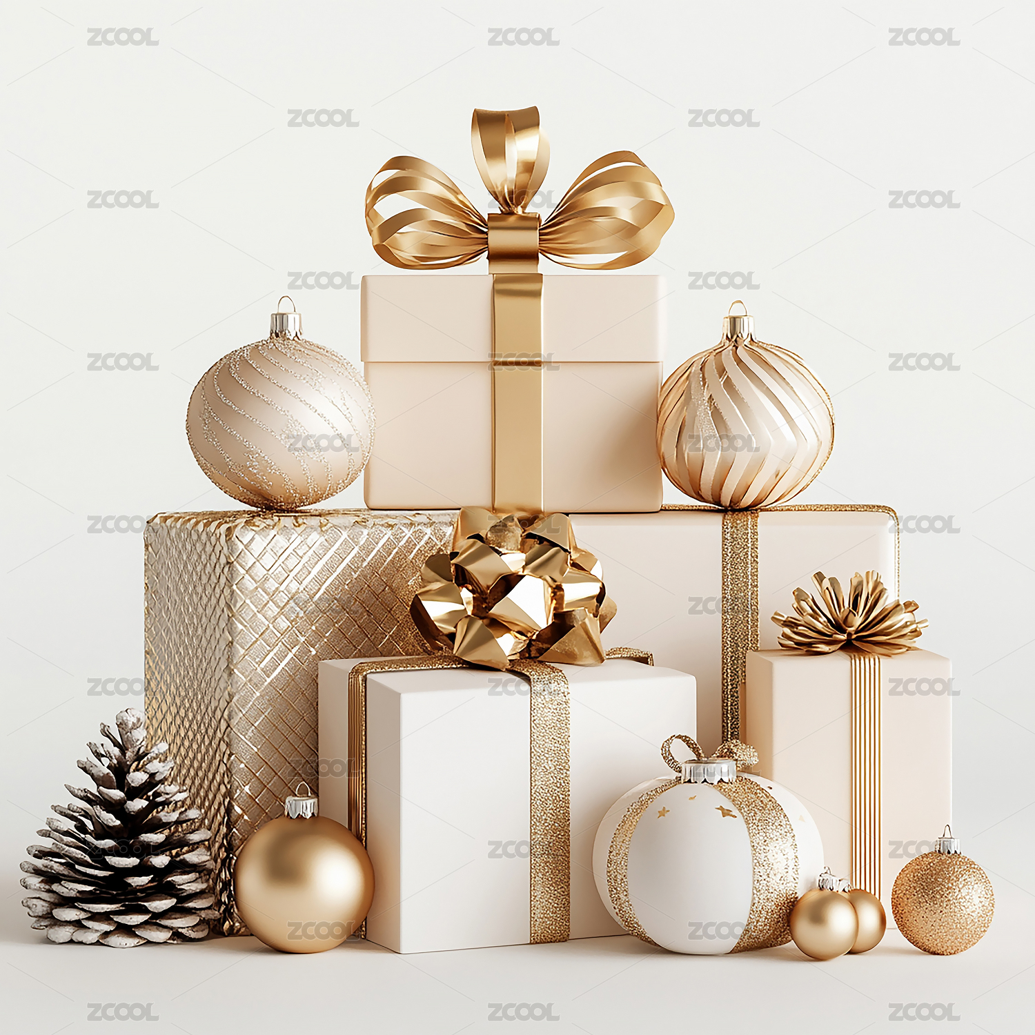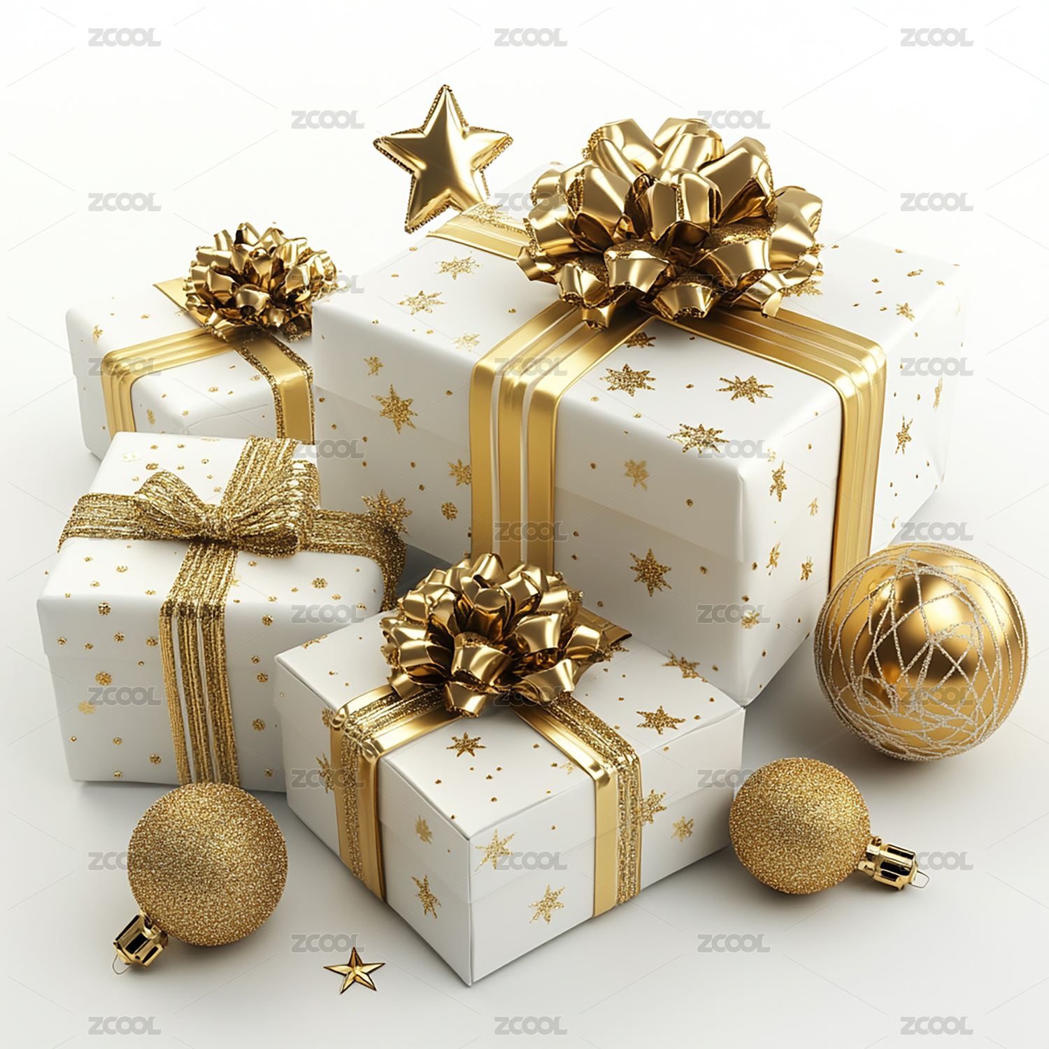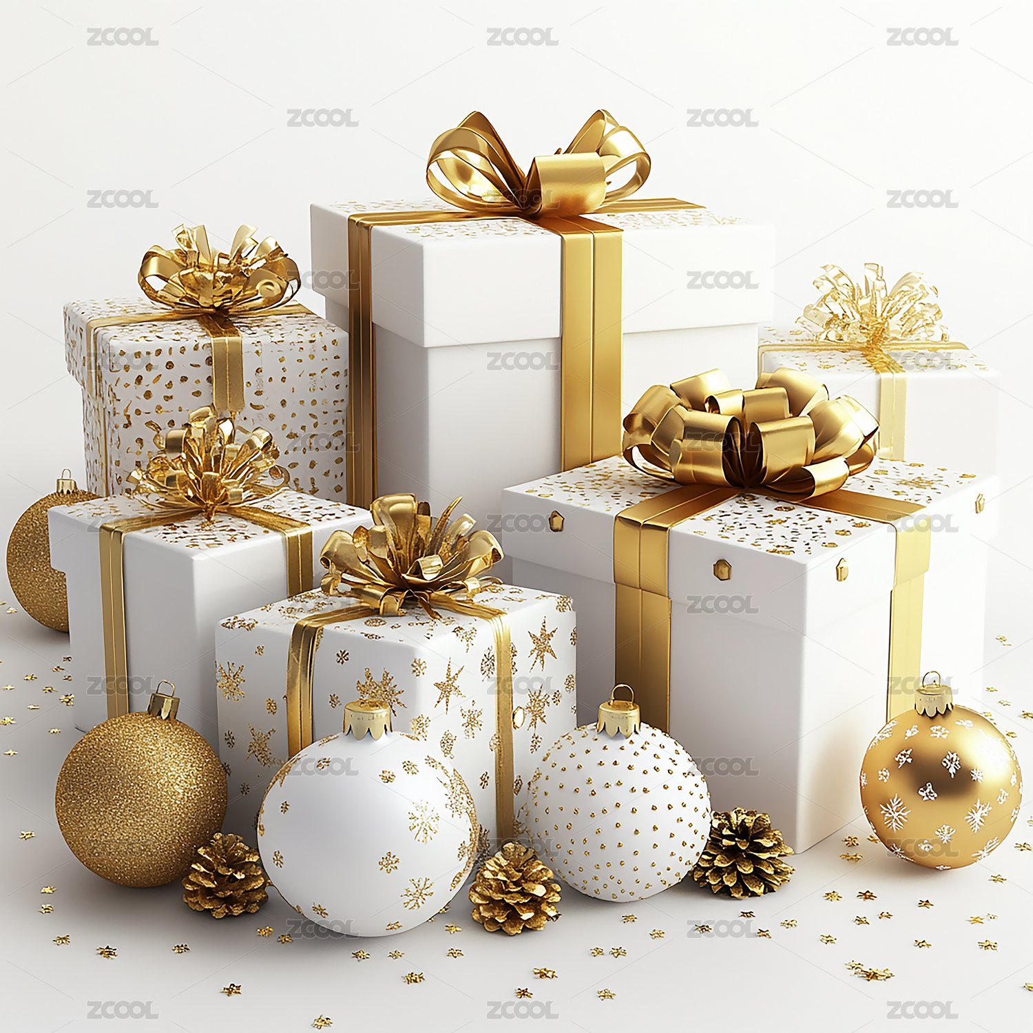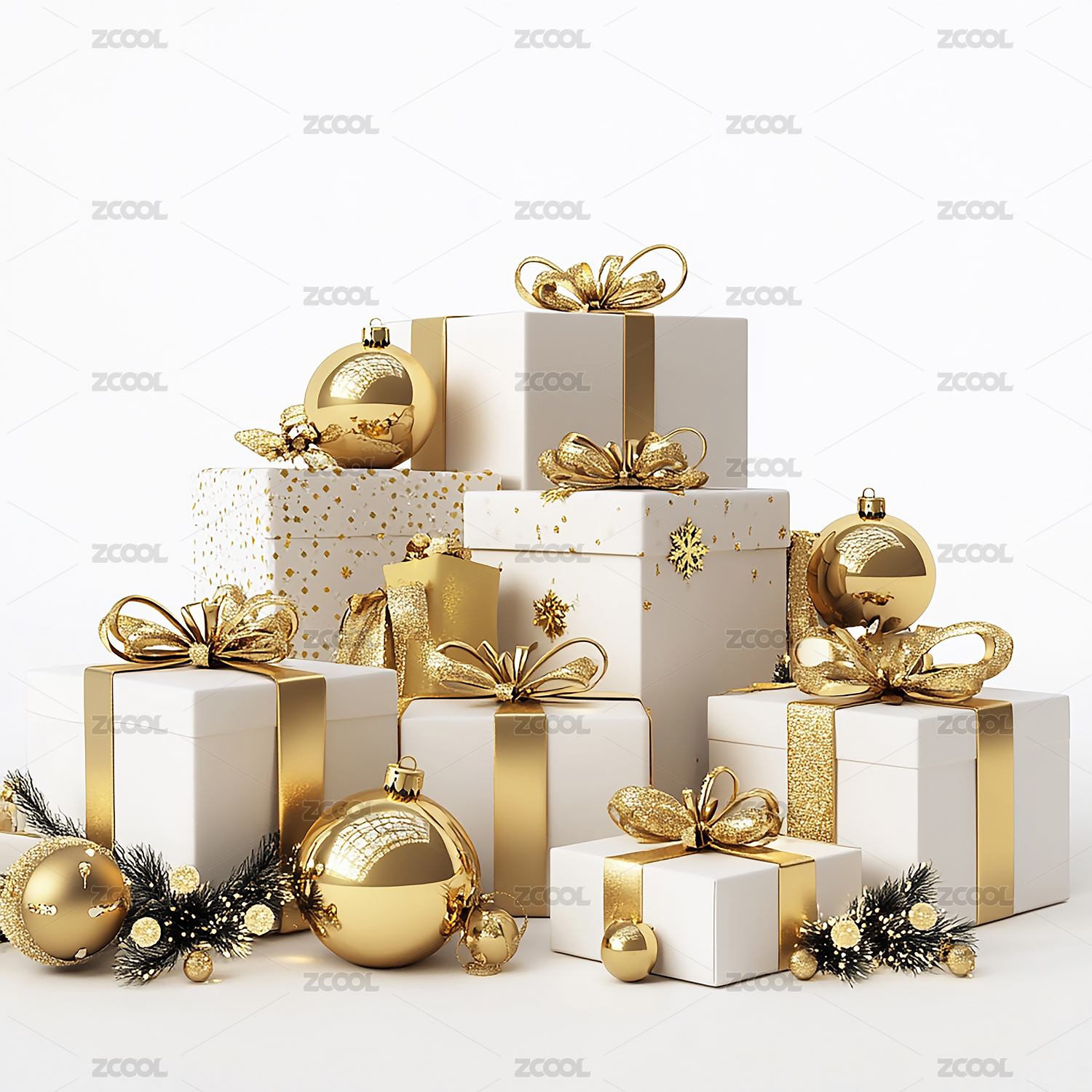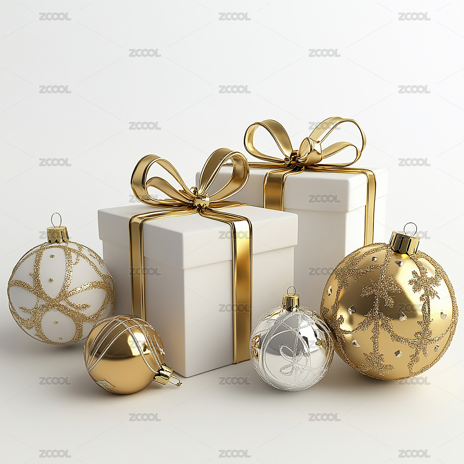 彩球和白色礼盒组合