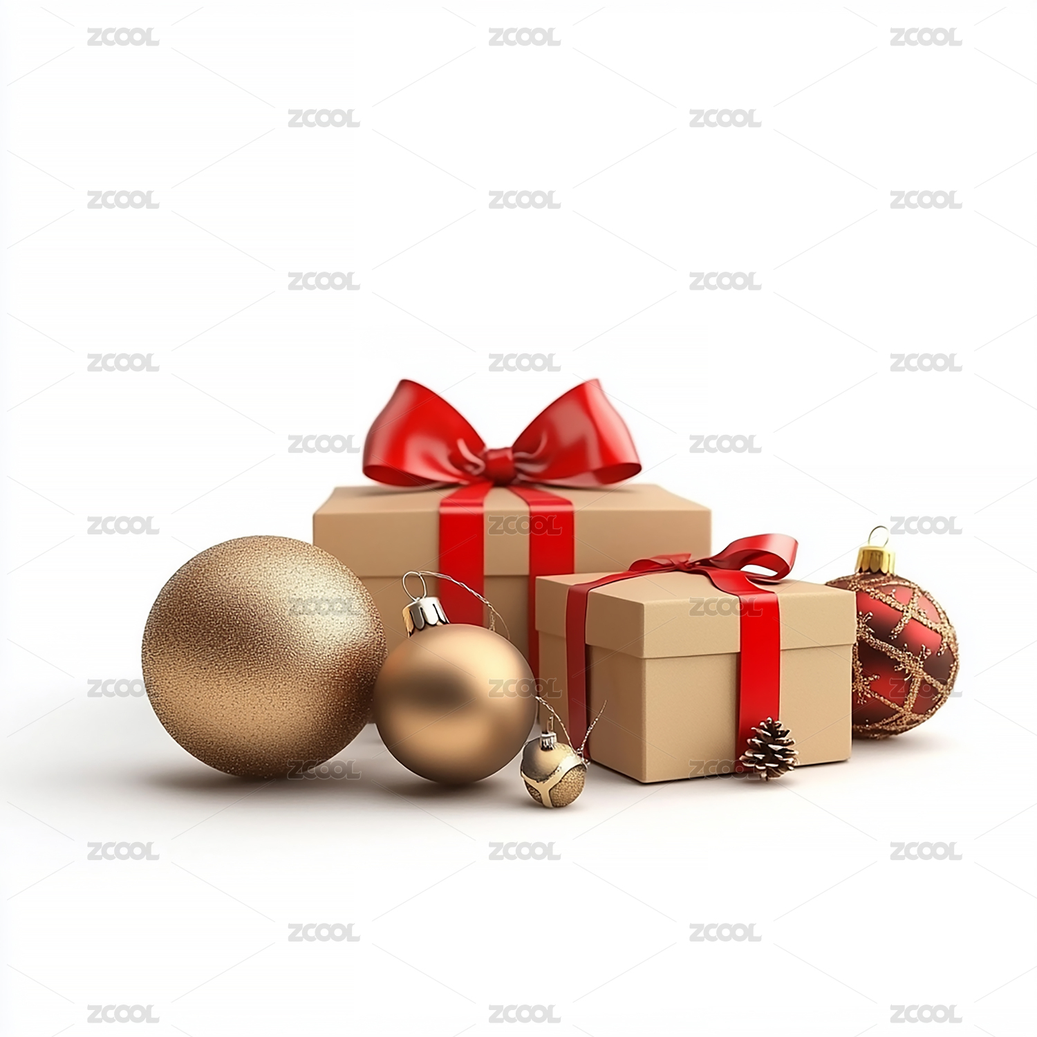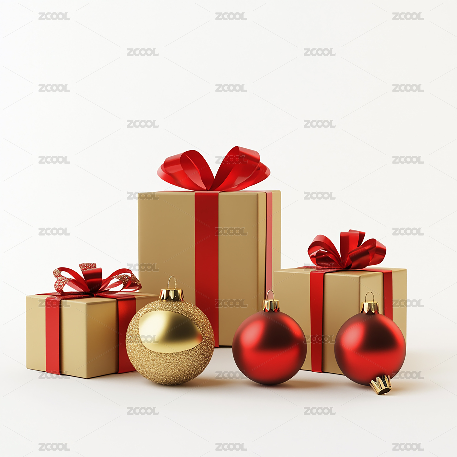 白色背景上的红金色礼盒组合元素