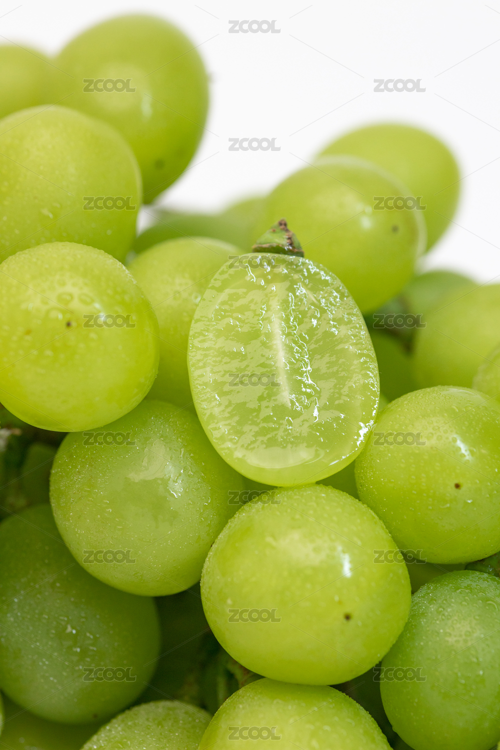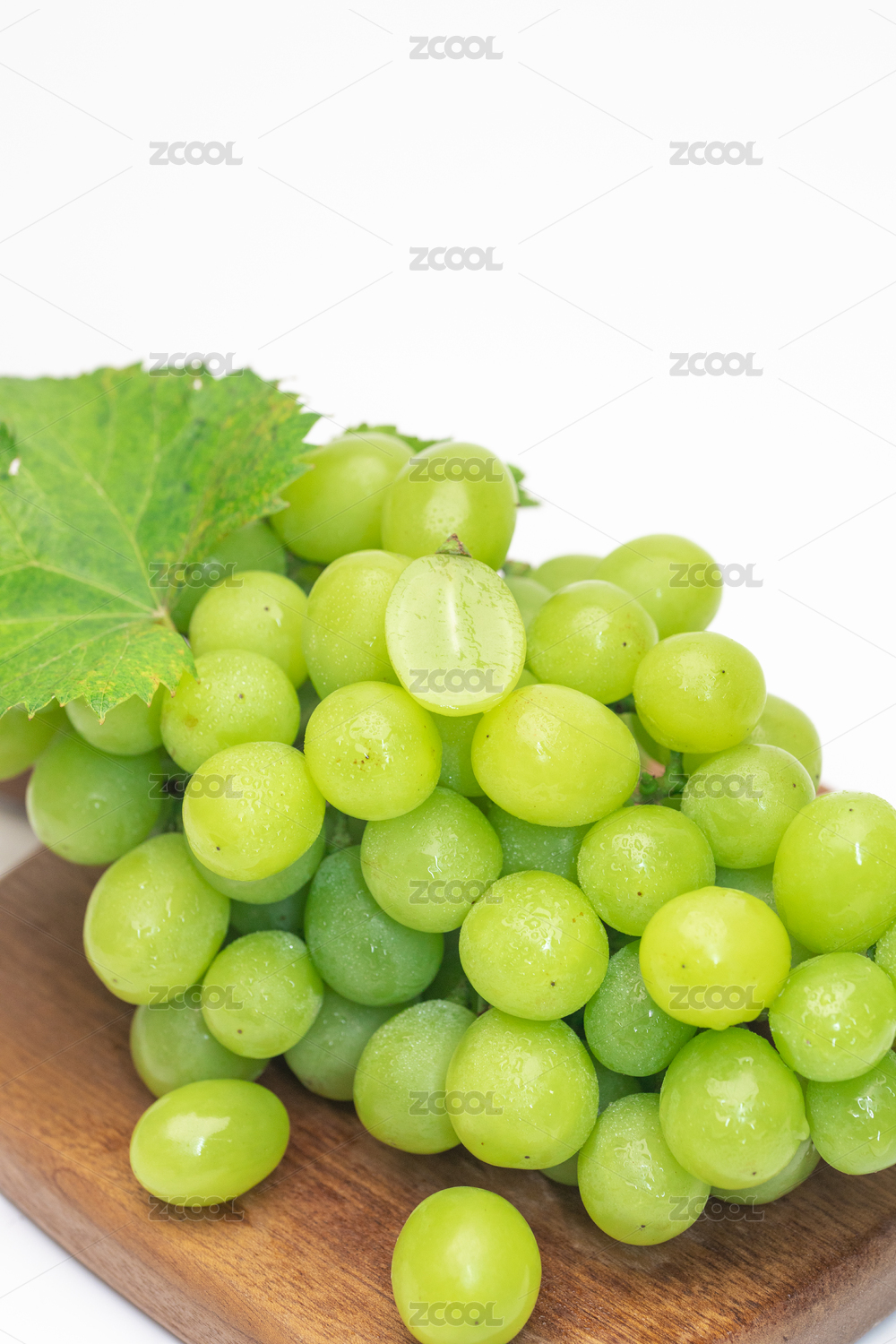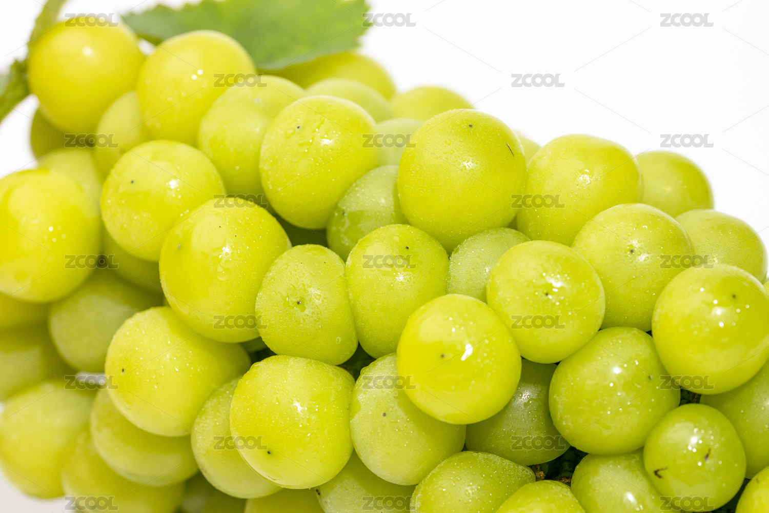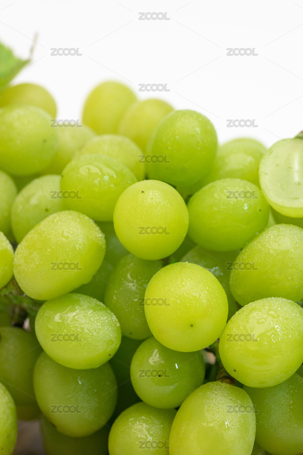 白底上带水珠新鲜的阳光玫瑰葡萄