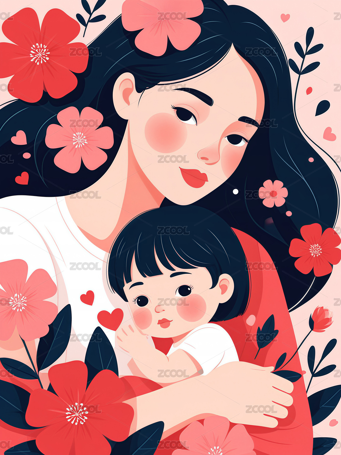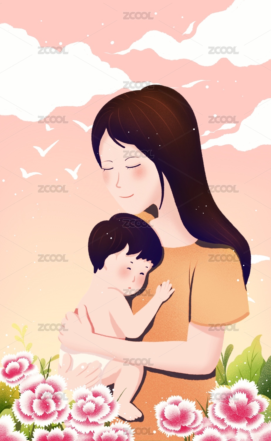 母婴节日插画