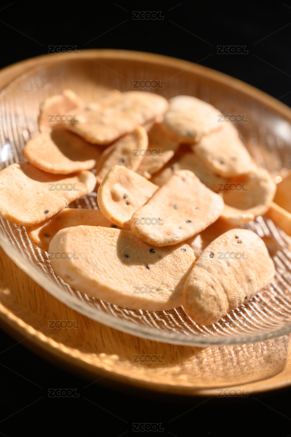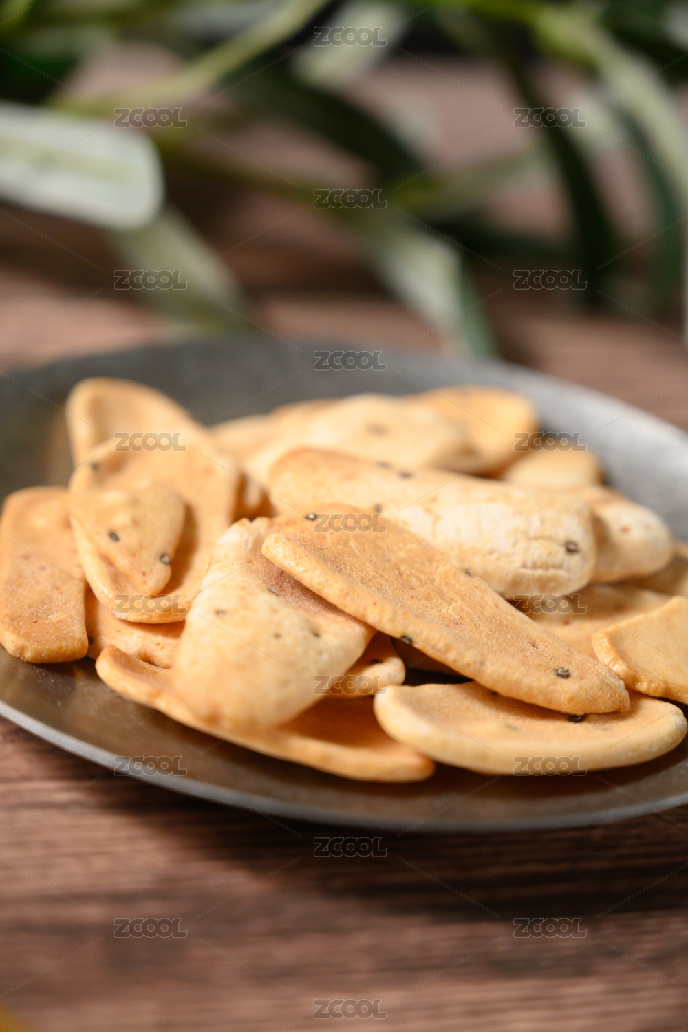 桌面上的盘子里的美味可口的虾片