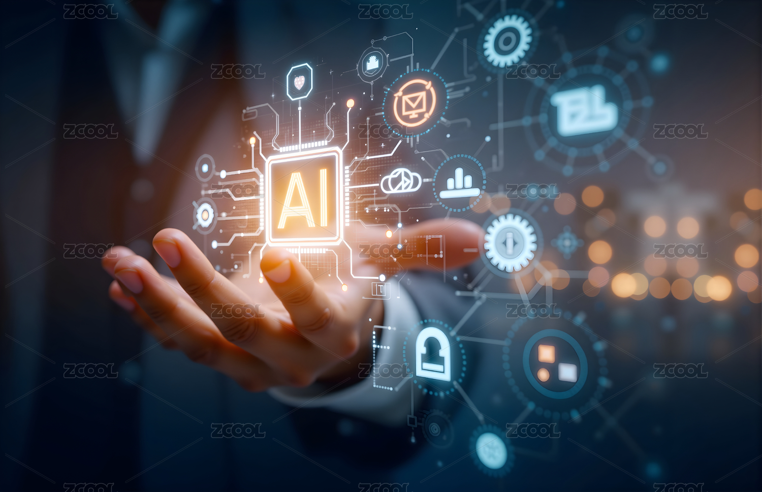 手托 AI 科技界面概念