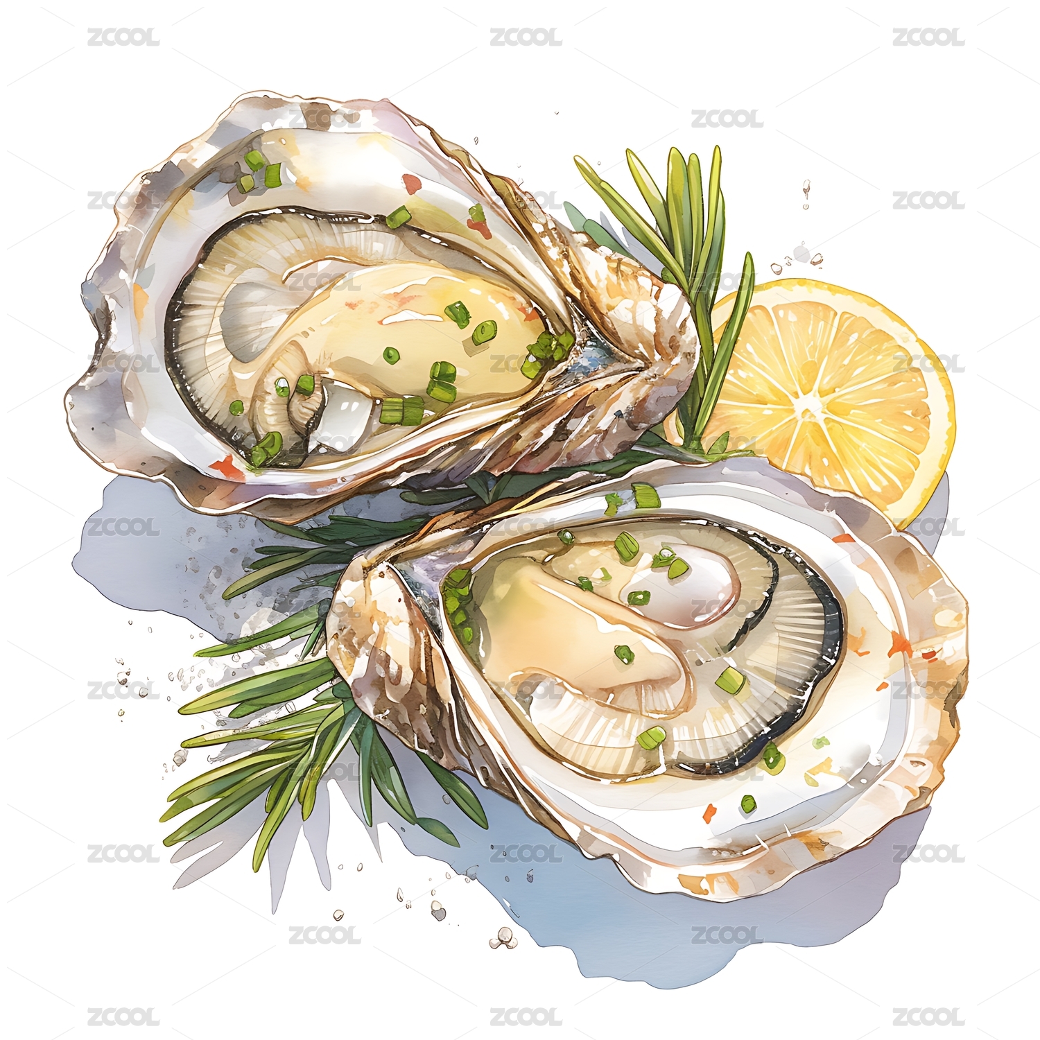 插画,食物,食品,白色背景,水彩,油画,美味,两个,生蚝,海鲜