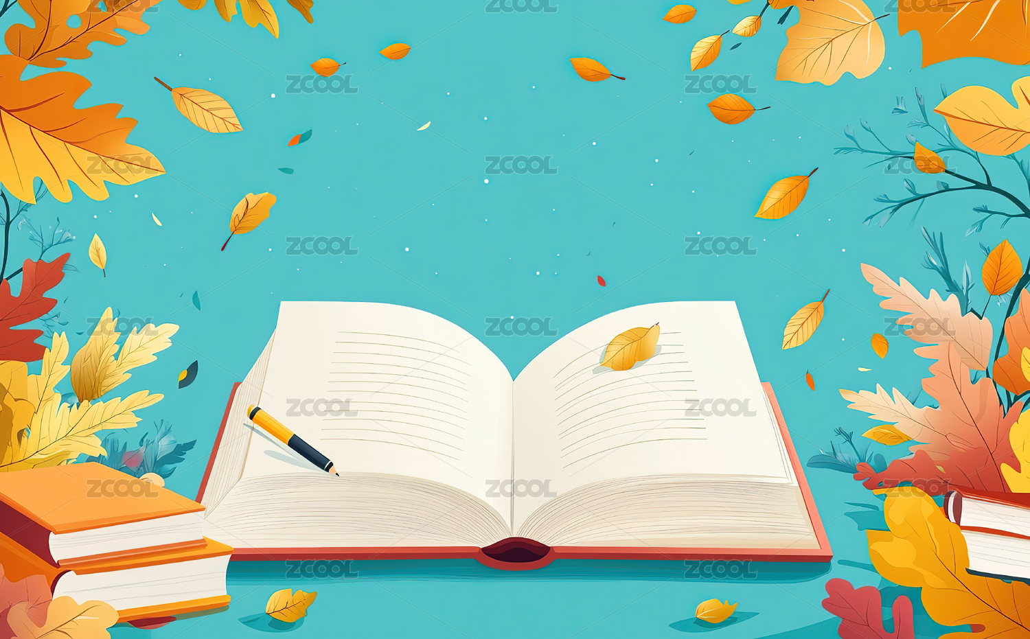 秋天翻开的书本空白插画