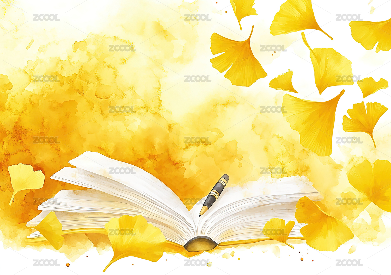 银杏叶与翻开的书本