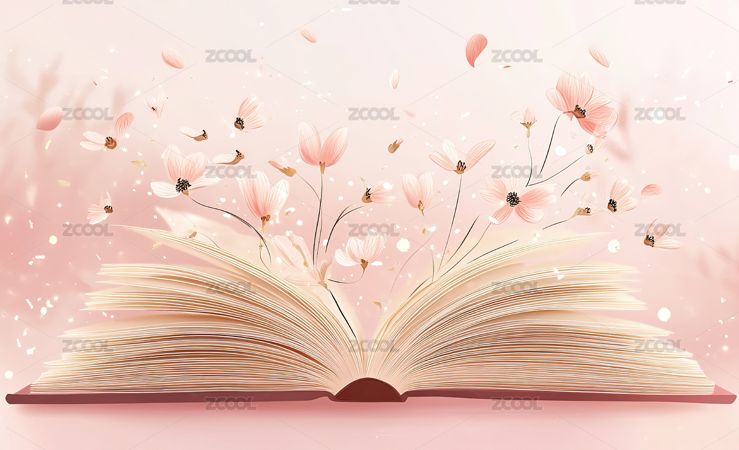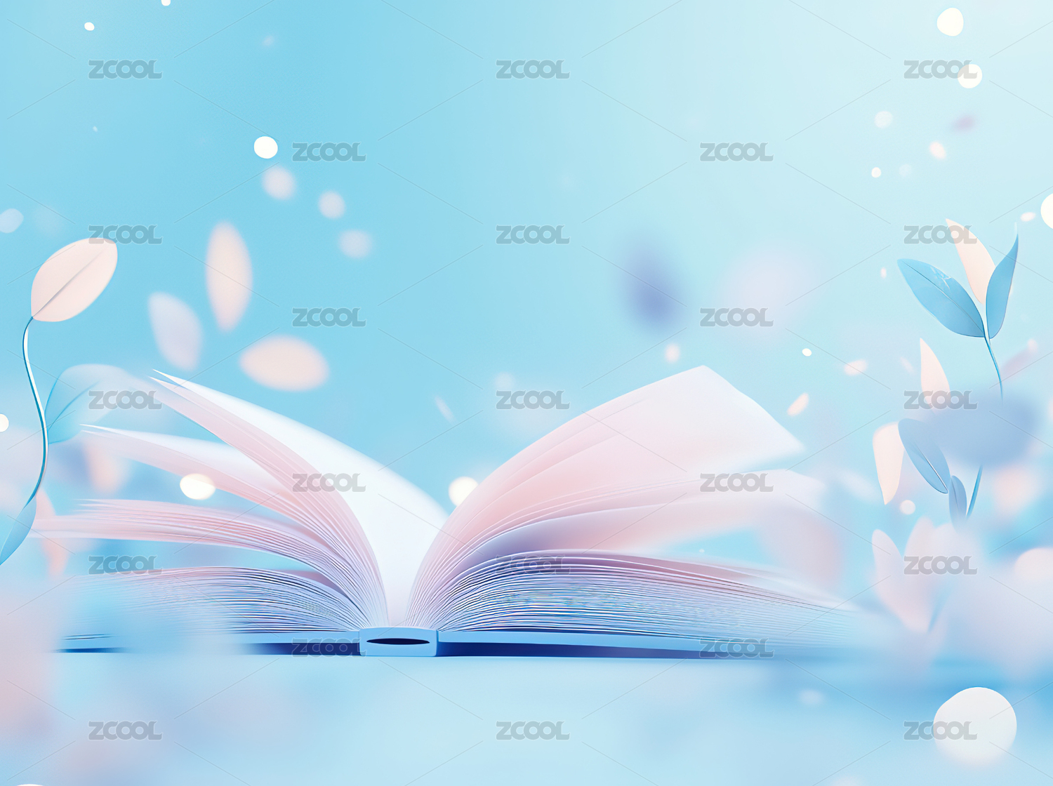 一本打开的书背景是绿植和花朵