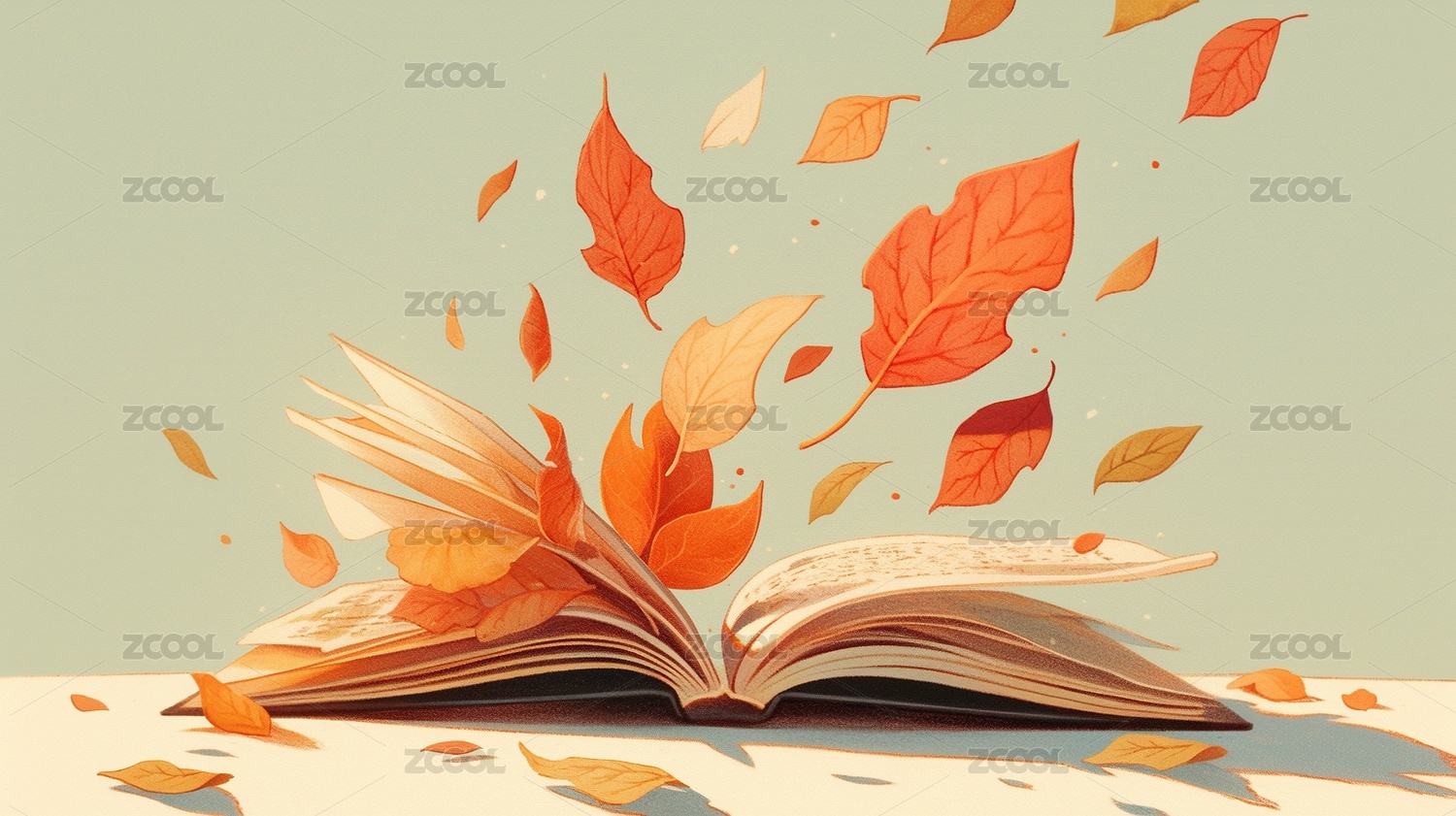 落叶书本文艺静谧场景秋季插画