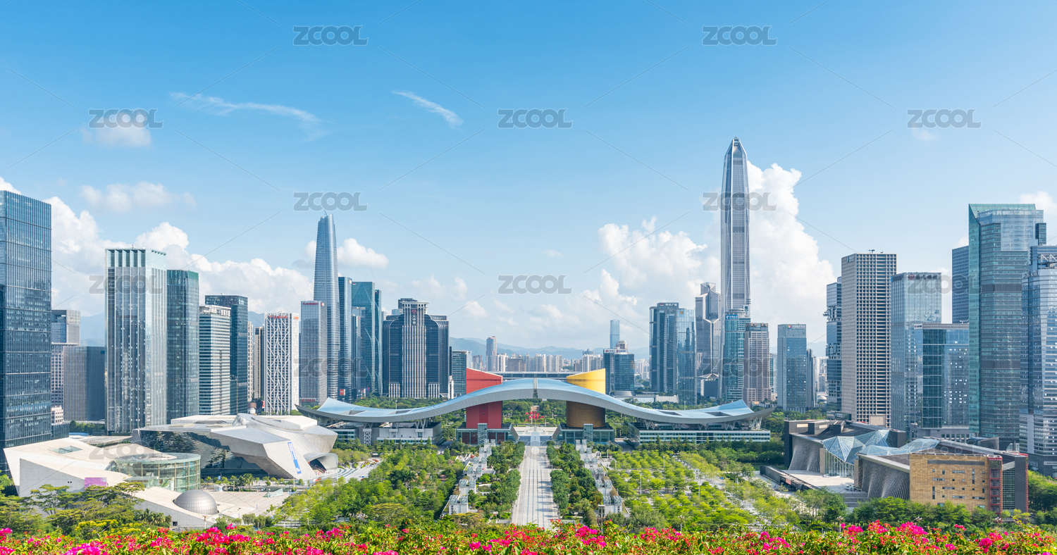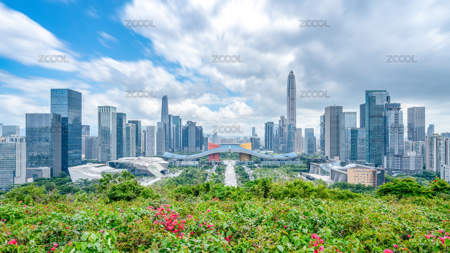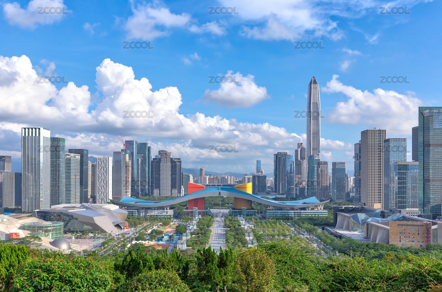 深圳,鹏城,福田,市民中心,莲花山,市区,风光,风景,蓝天,城市风光